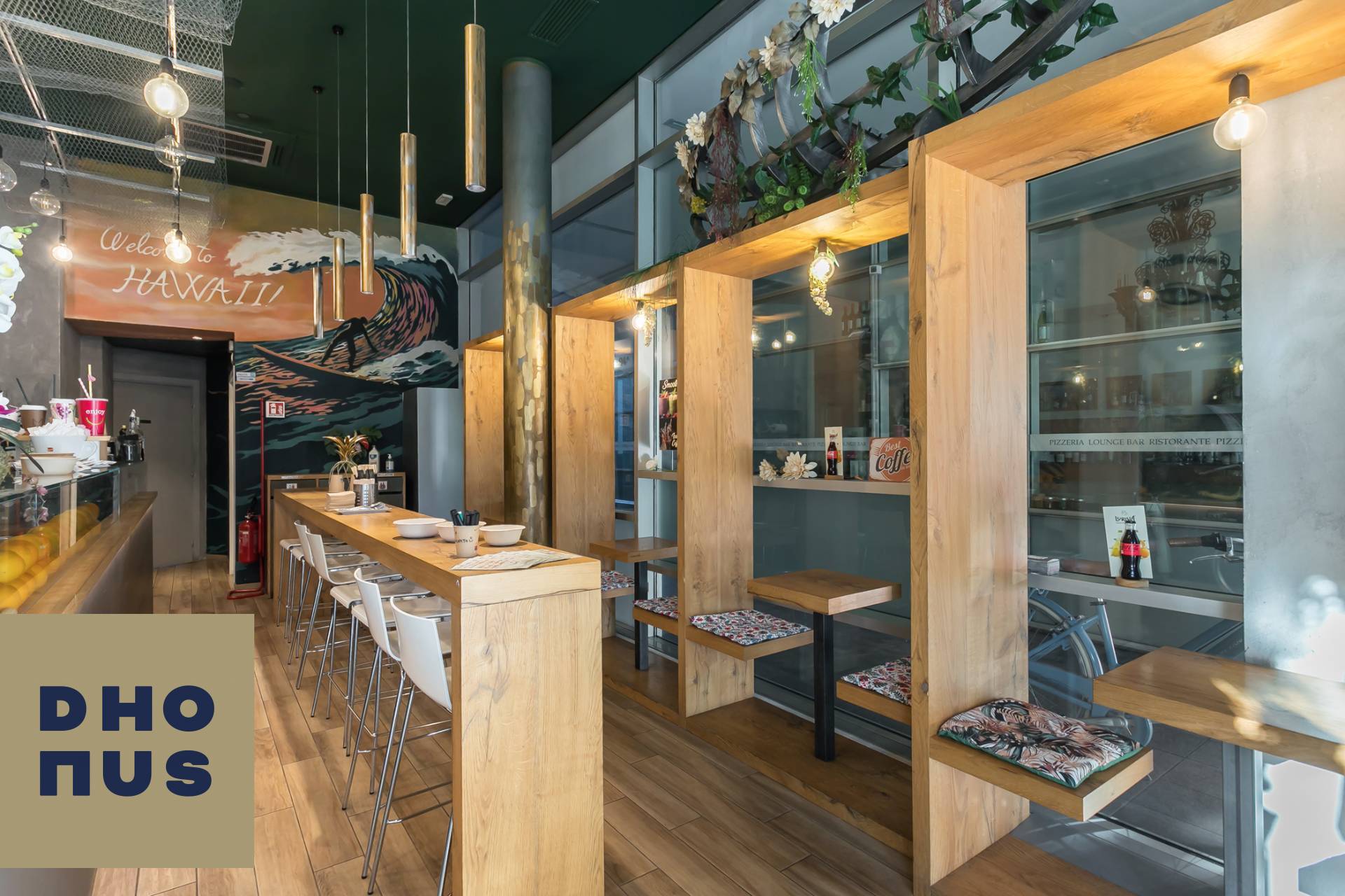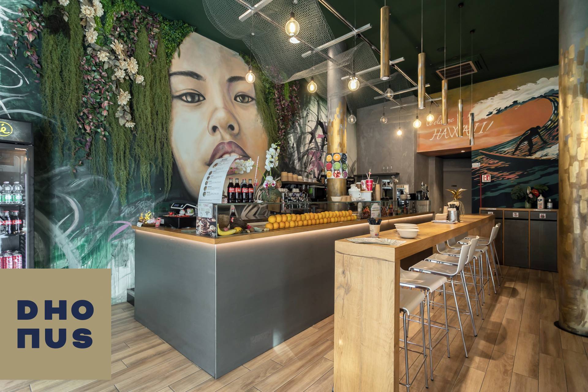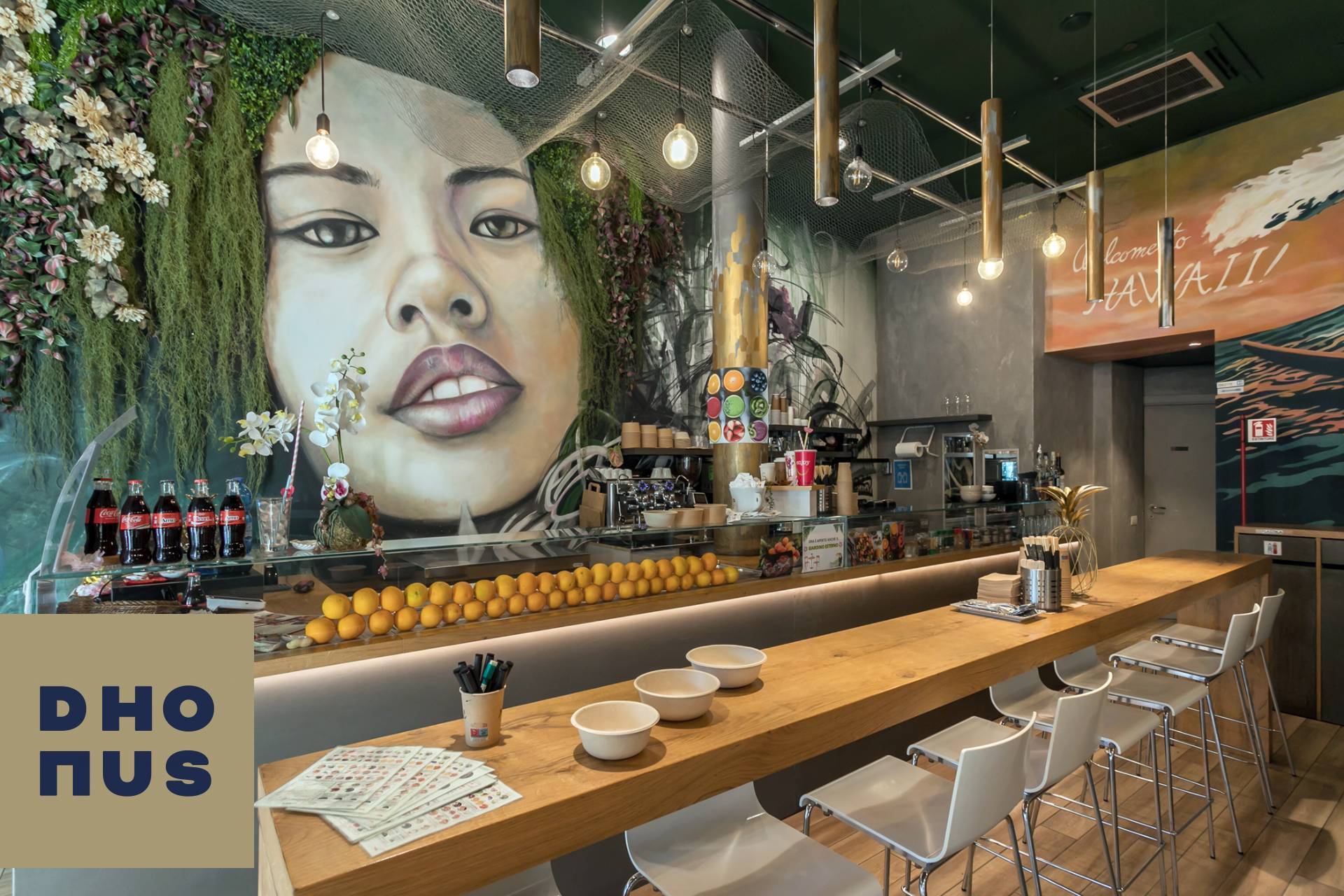 ° VENDESI IL TUO ANGOLO DI HAWAII IN CITT? ° Entra e lasciati trasportare dal profumo del mango, dal verde rigoglioso e dalle onde che decorano le pareti.