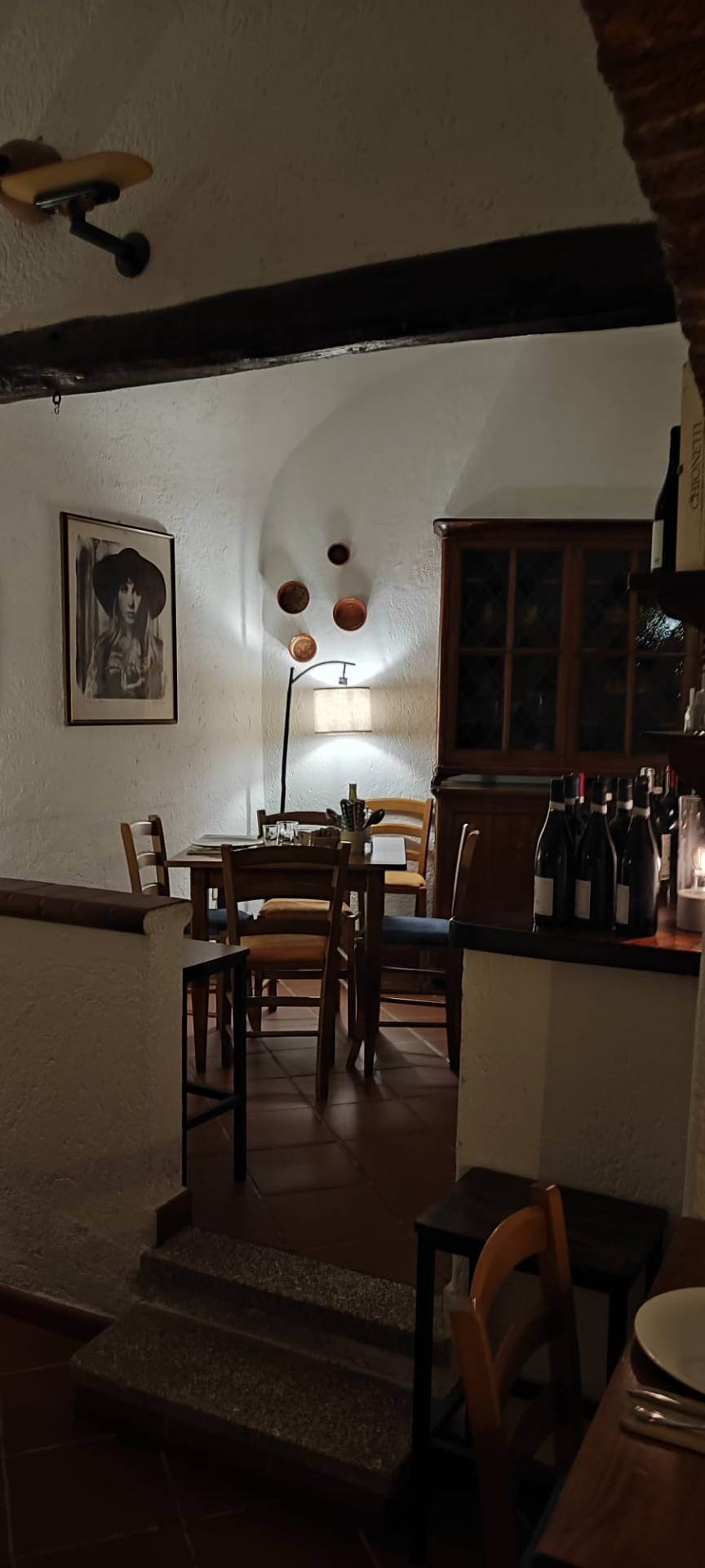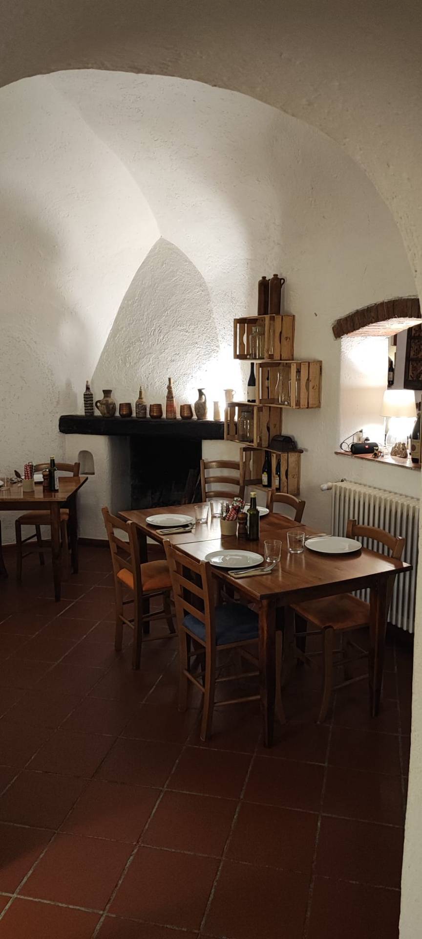 L'ambiente caldo, curato dall'aria tradizionale e "antica", i pavimenti in cotto e soffitti a volta, che si sviluppa su 3 sale rendono la soluzione accogliente e intima avendo una trentina di posti a sedere.