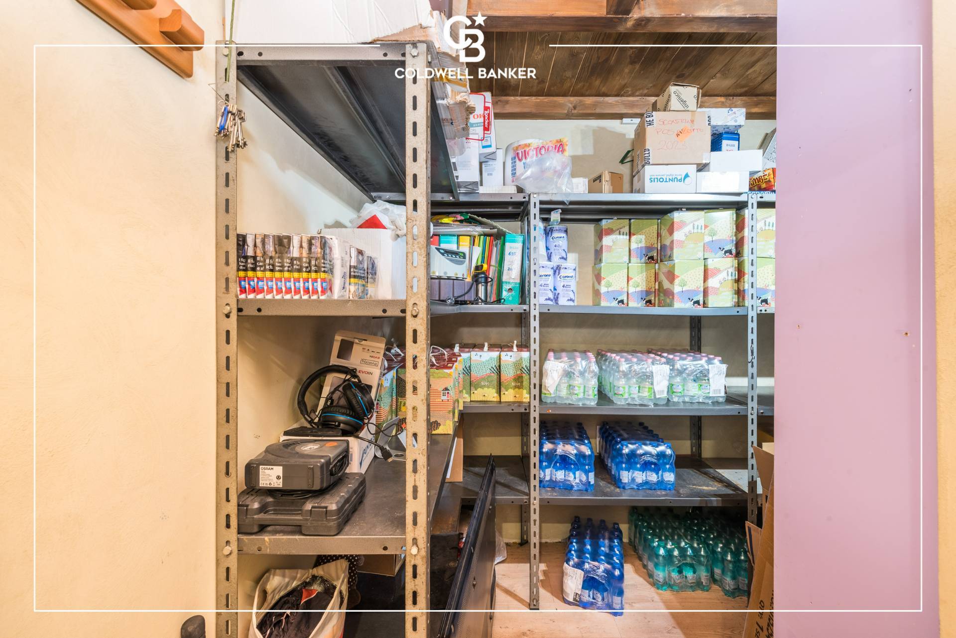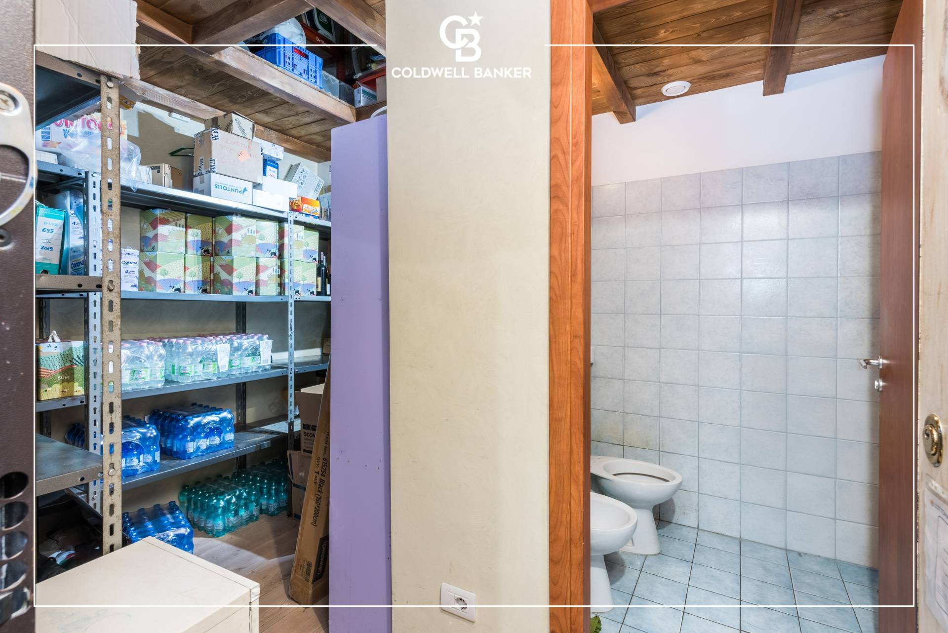 Il locale dispone di una vetrina su strada principale, vetrinette e mensole portaoggetti interne, bagno, condizionatore caldo freddo, impianto di allarme Verisure, cassaforte blindata di h 2,00 mt per 90 cm. e Serrande automatizzate.