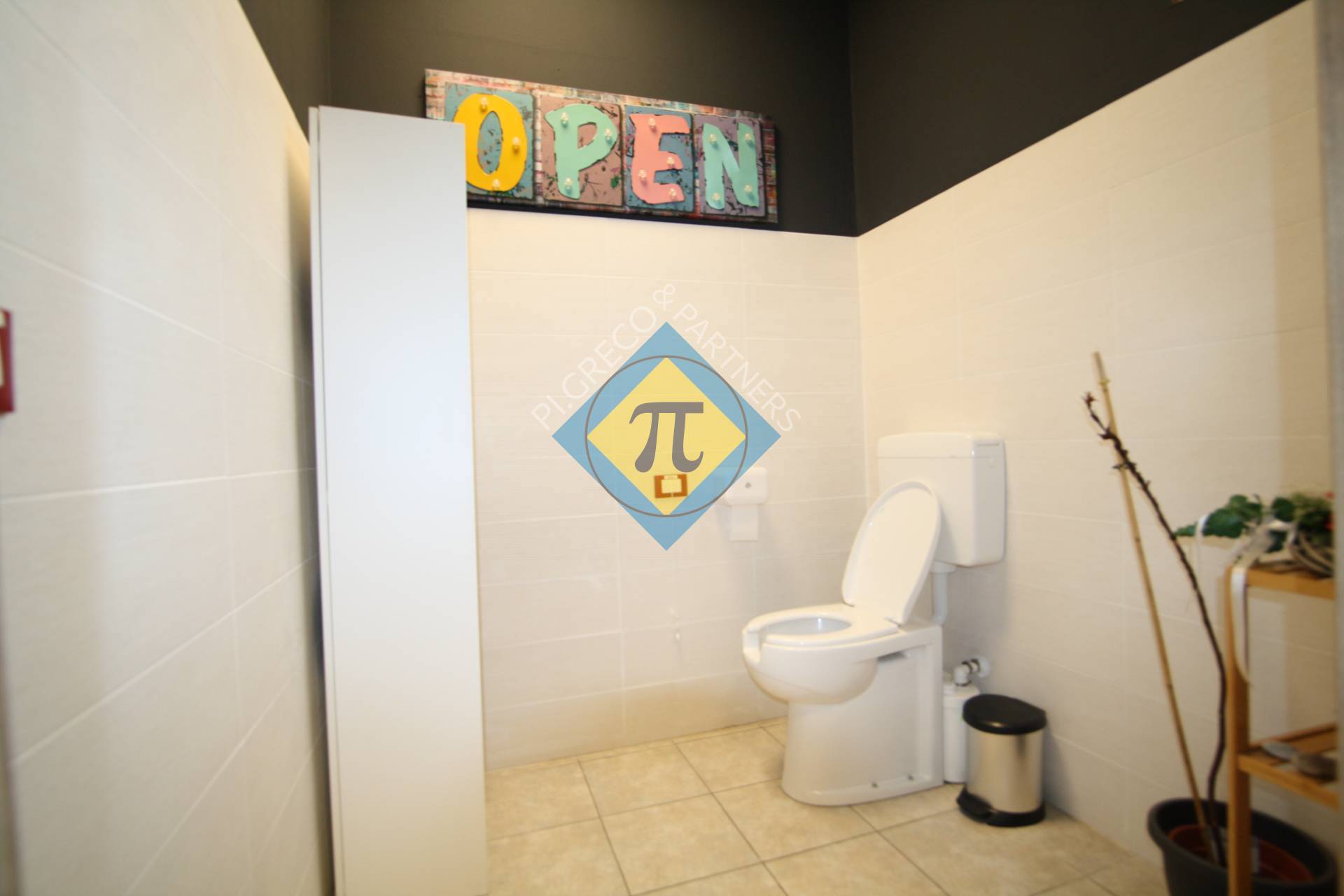 Ovviamente troviamo un bagno privo di barriere architettoniche e scendendo una scala a chiocciola si raggiunge lampio magazzino comodissimo per stivare le derrate e provvisto di grande frigorifero contenitore.