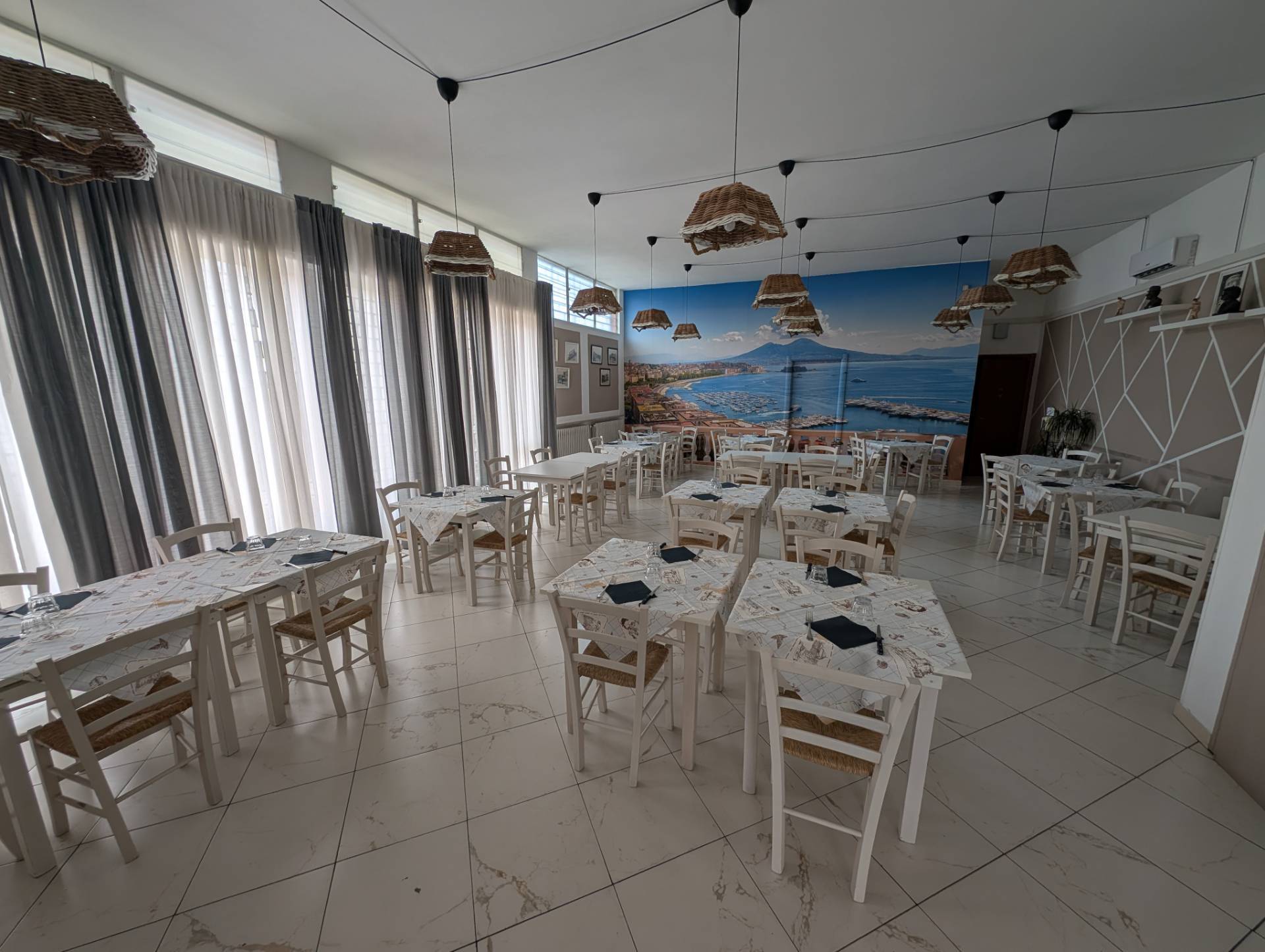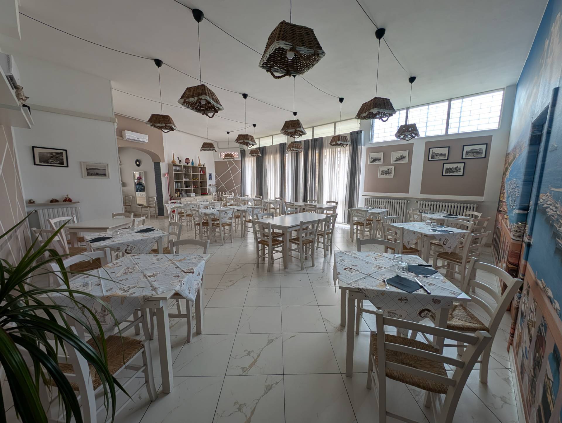 Ha la capacit di circa 70 coperti interni in un ambiente accogliente e di ulteriori 60 coperti nella distesa esterna, perfetta per la stagione estiva.