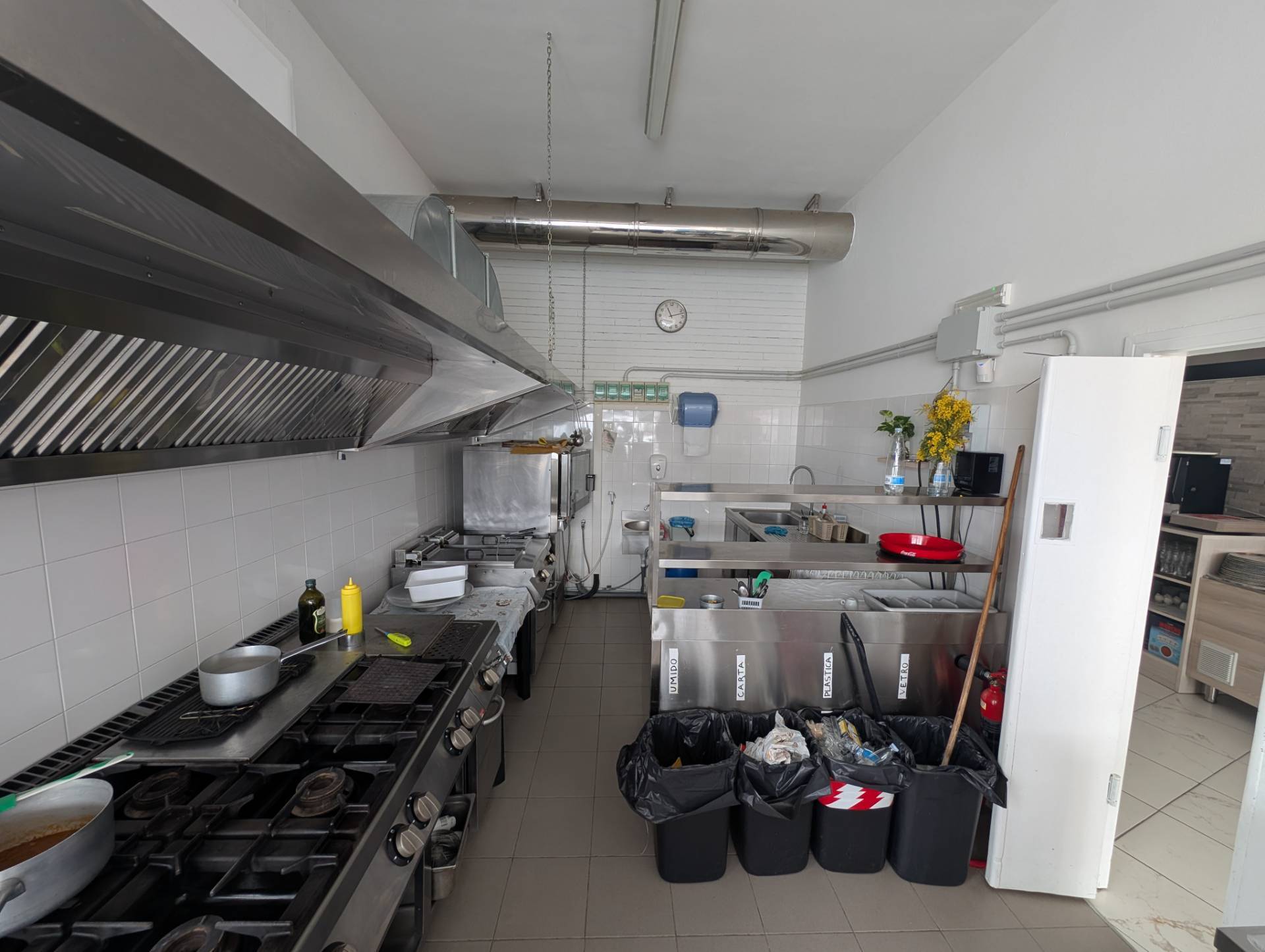 Presenti inoltre, oltre all'ampia cucina, un vano adibito a deposito e tre servizi igienici.