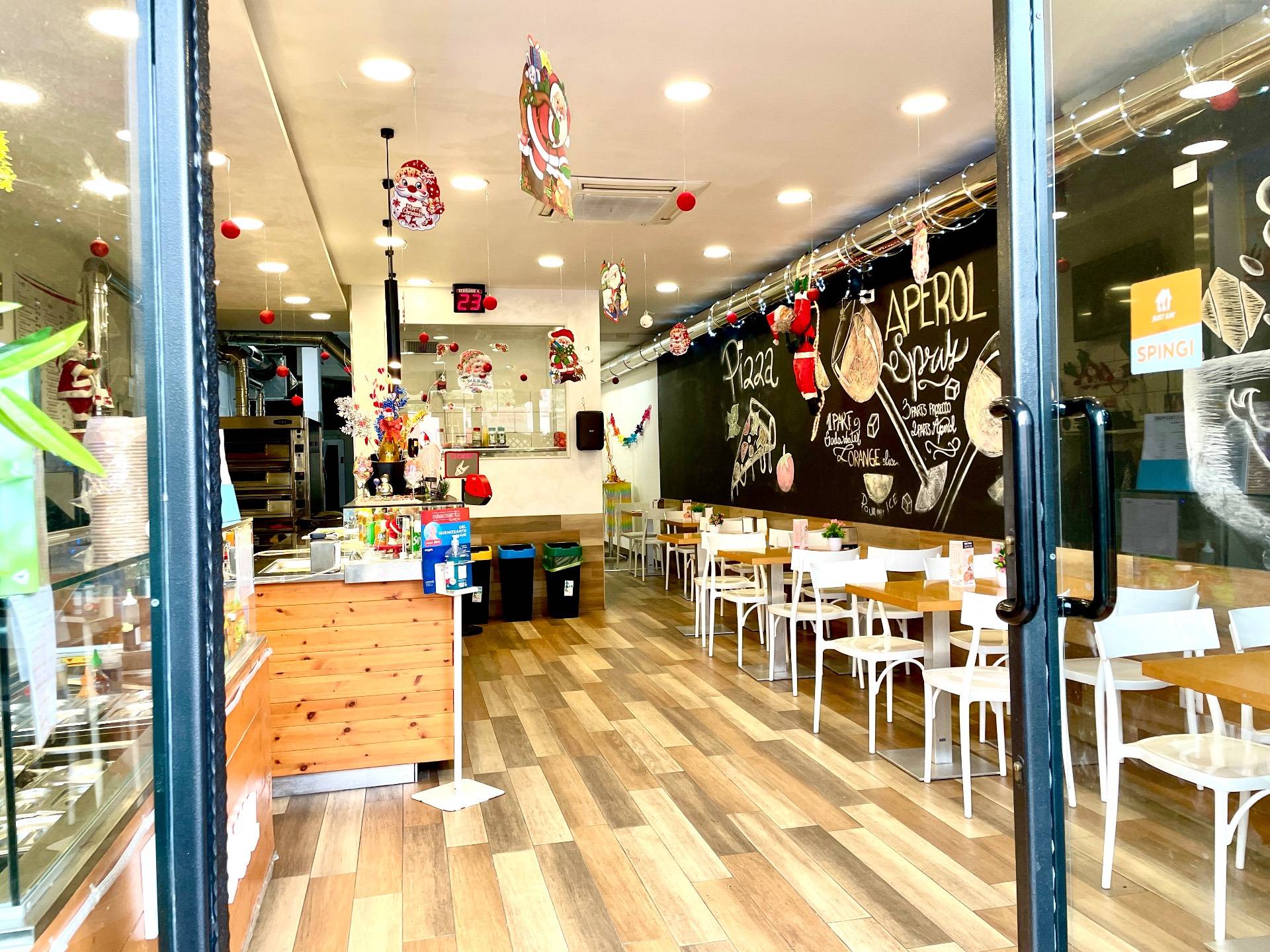 Il locale, completamento rinnovato, composto da cucina|area lavoro con cappa di aspirazione nuova, area somministrazione alimenti e bevande, magazzino, cella frigorifera, spogliatoi e bagno per il personale, bagno per la clientela.