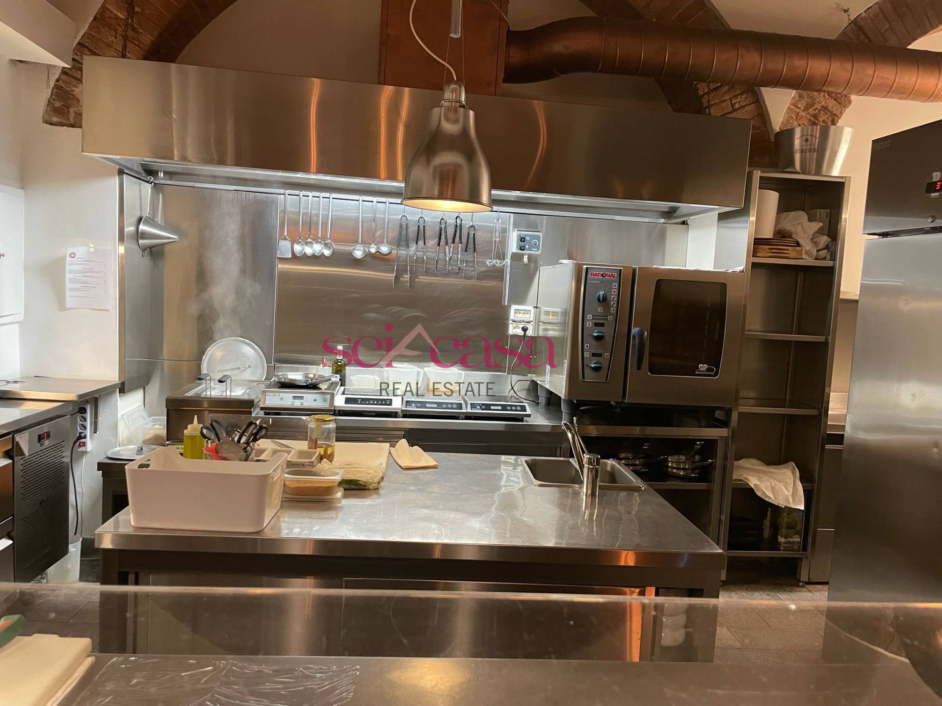 La cucina a vista, idea prima assoluta, e si vede sia dalla strada che dalla sala. Inoltre sono presenti due servizi igienici ed uno spogliatoio.