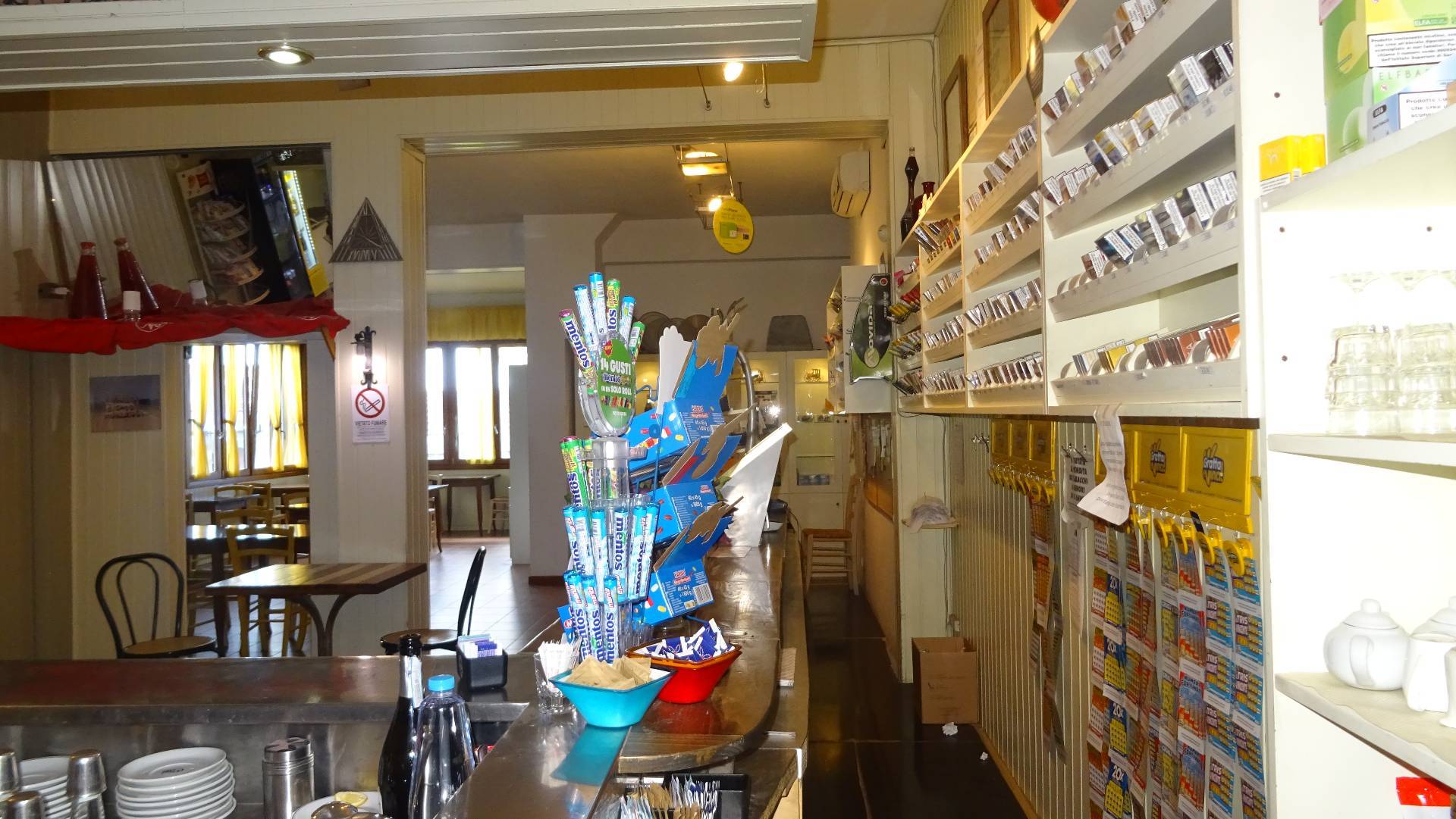 Il primo locale uno spazioso open space che accoglie il pubblico e ospita una zona espositiva dedicata ai prodotti in vendita, dolci e salati per prime colazioni, caffetteria, tabacchi ecc. Il secondo locale in diretto collegamento con il primo locale destinato alla attivit di ristorazione e dispone di un locale cucina completamente attrezzato.
