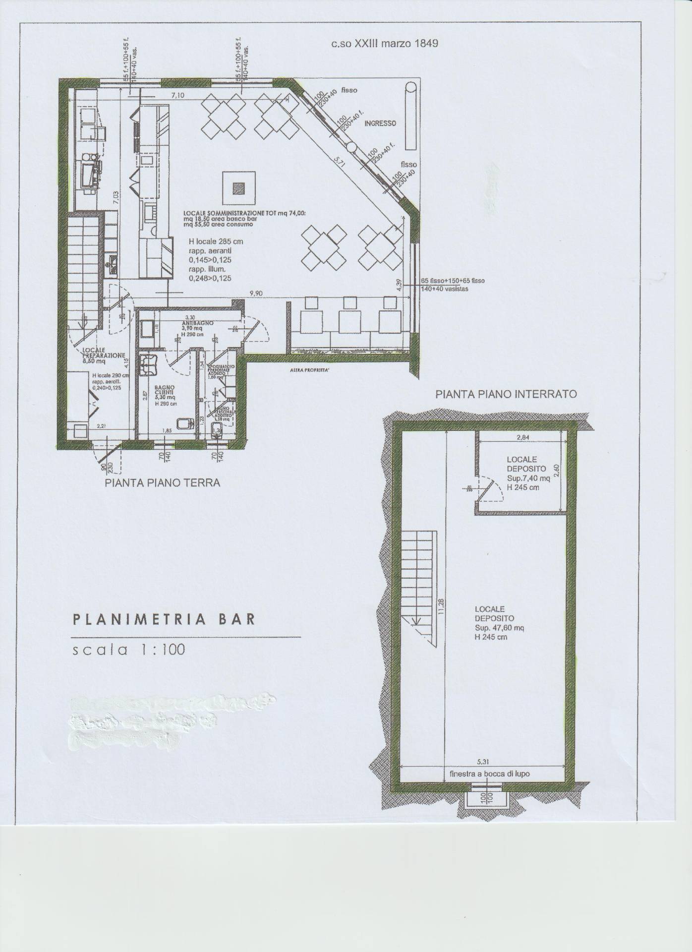Disposto per la parte ricettiva e di lavorazione per mq. 95 ca., oltre a magazzino di mq. 55 ca. tutto a norma con bagno, antibagno, spogliatoio, etc. Barriere architettoniche assenti.