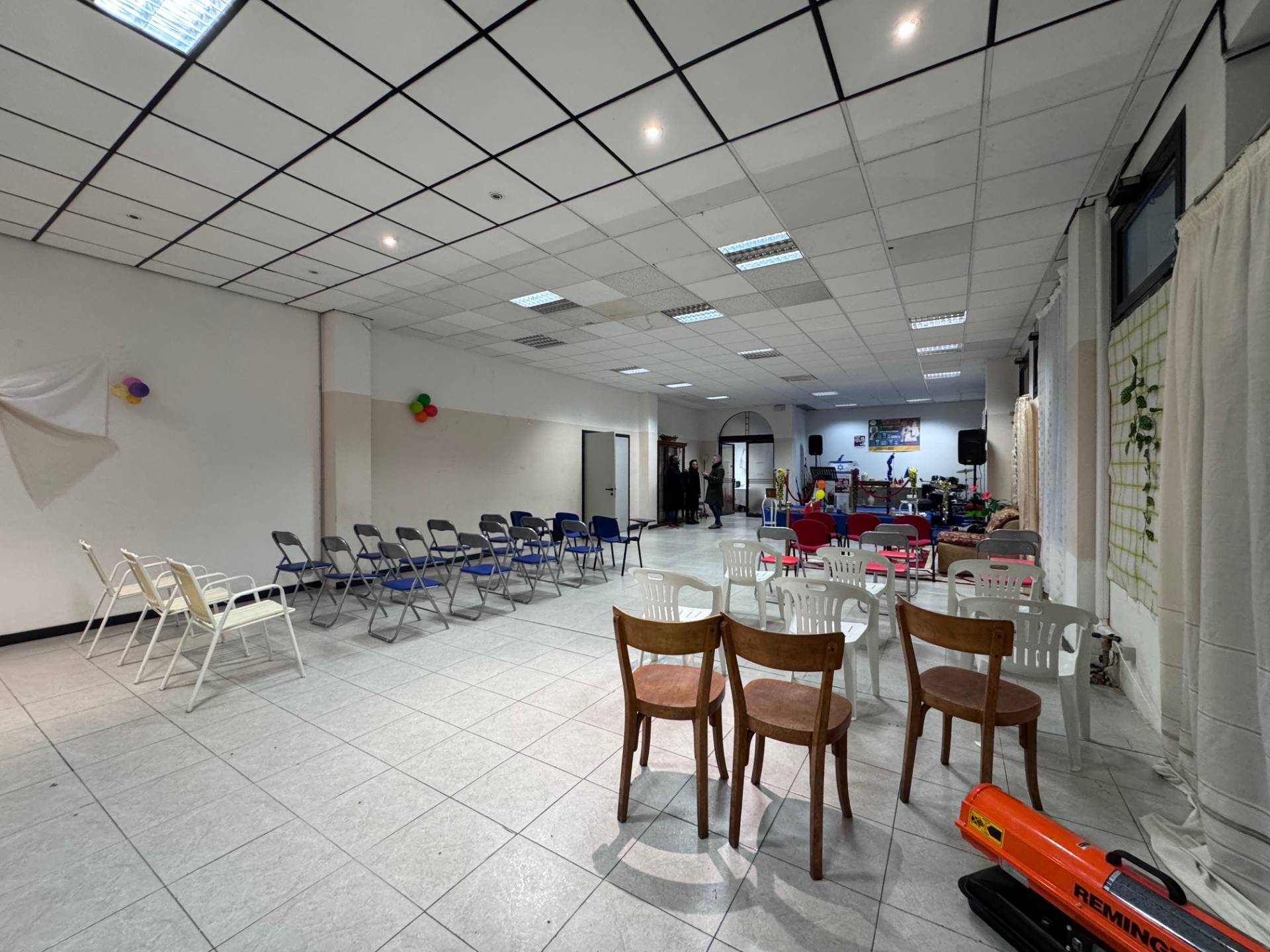 L'immobile attualmente cos suddiviso: ingresso ampio, ripostiglio, sala conferenze, spogliatoio e due bagni.