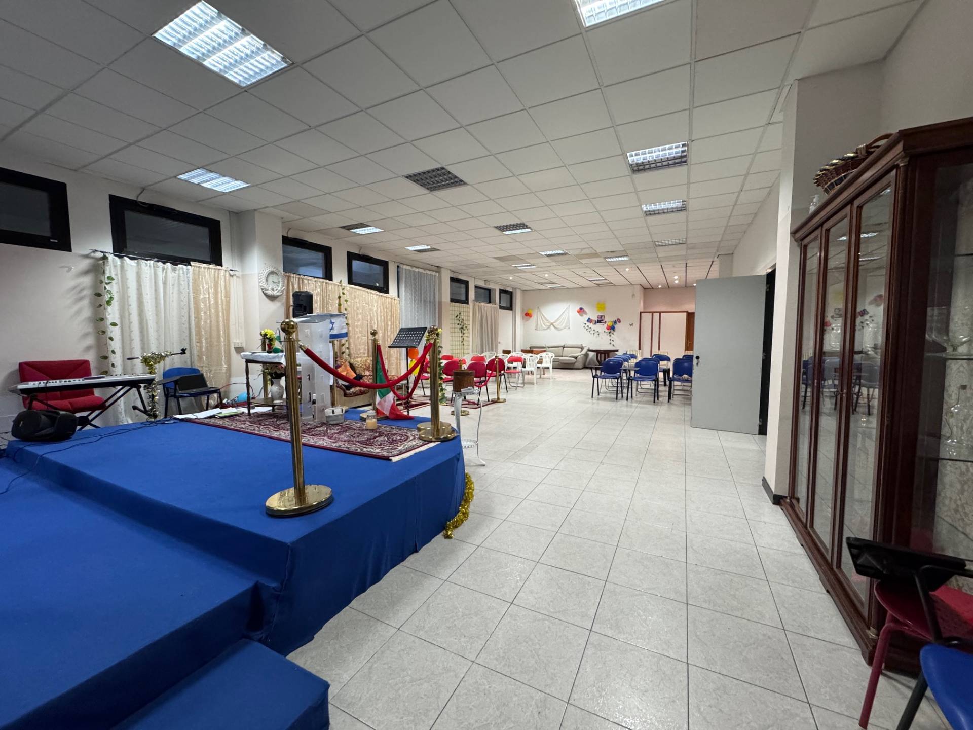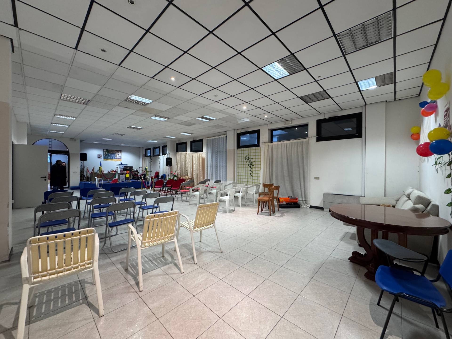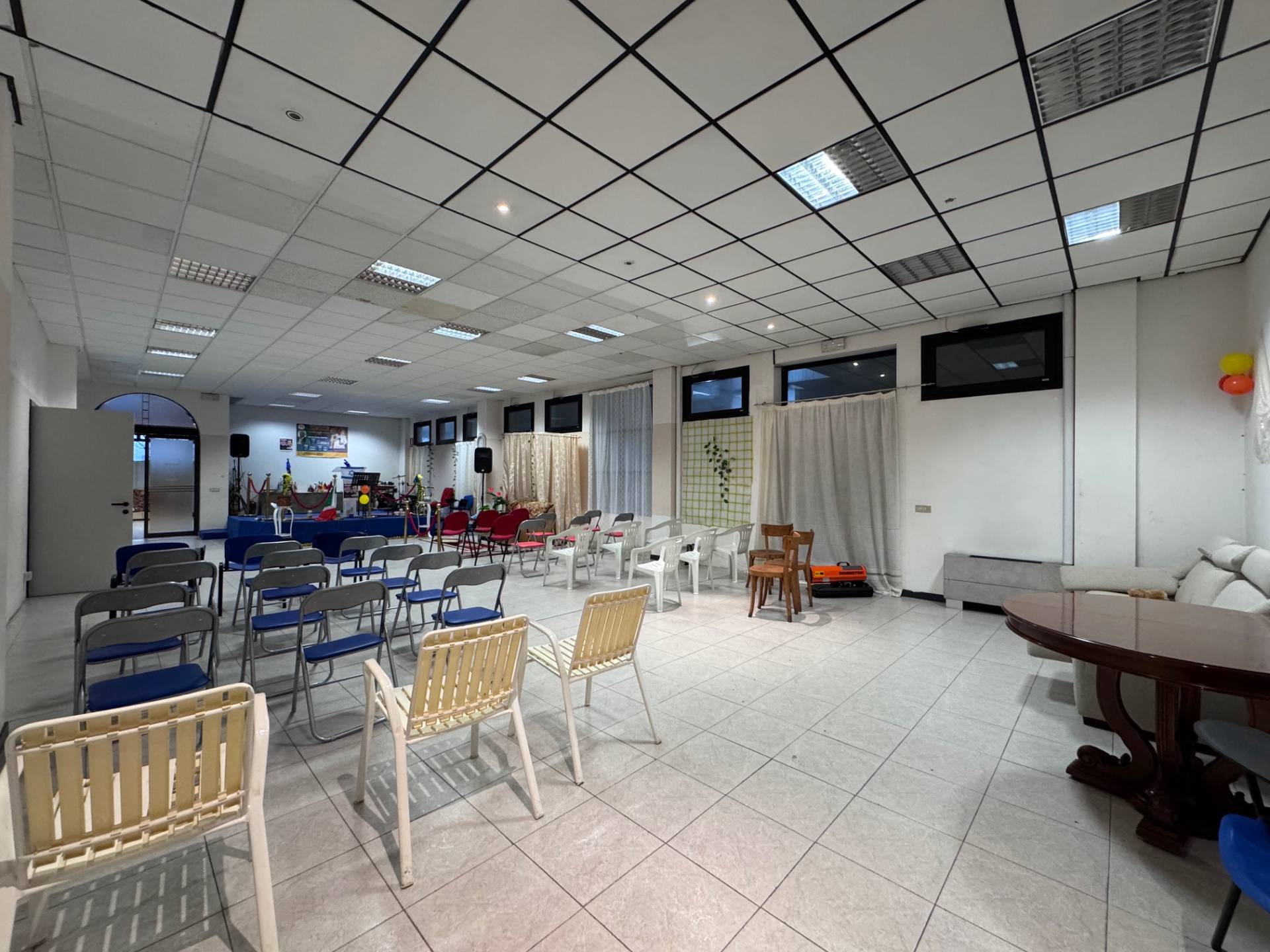 L'immobile attualmente cos suddiviso: ingresso ampio, ripostiglio, sala conferenze, spogliatoio e due bagni.