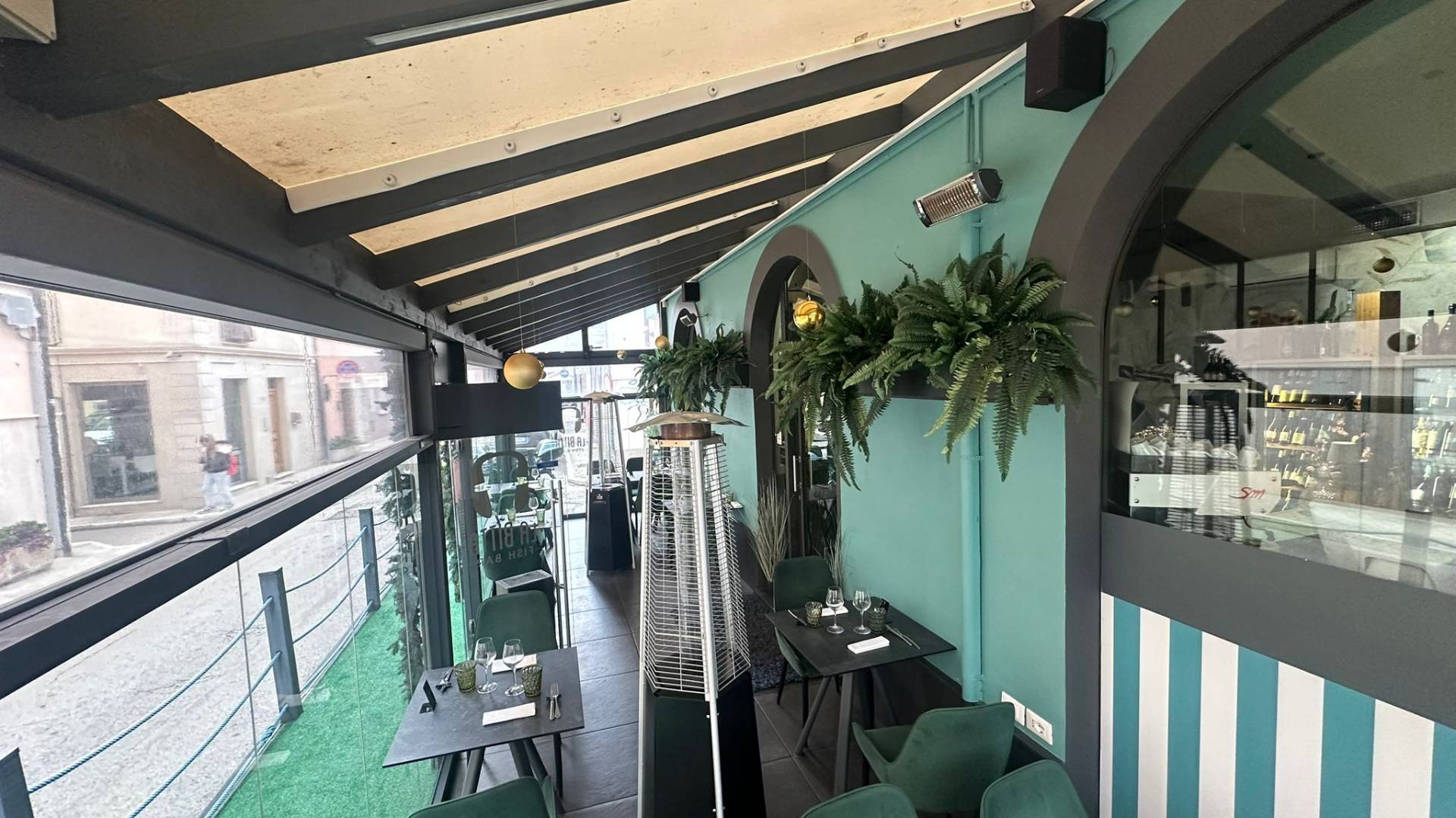 Inoltre il ristorante munito di un ripostiglio al piano -1 ed un gazebo all'esterno coperto di venticinque posti oltre alla possibilit di occupare il suolo pubblico con ulteriori posti a sedere.