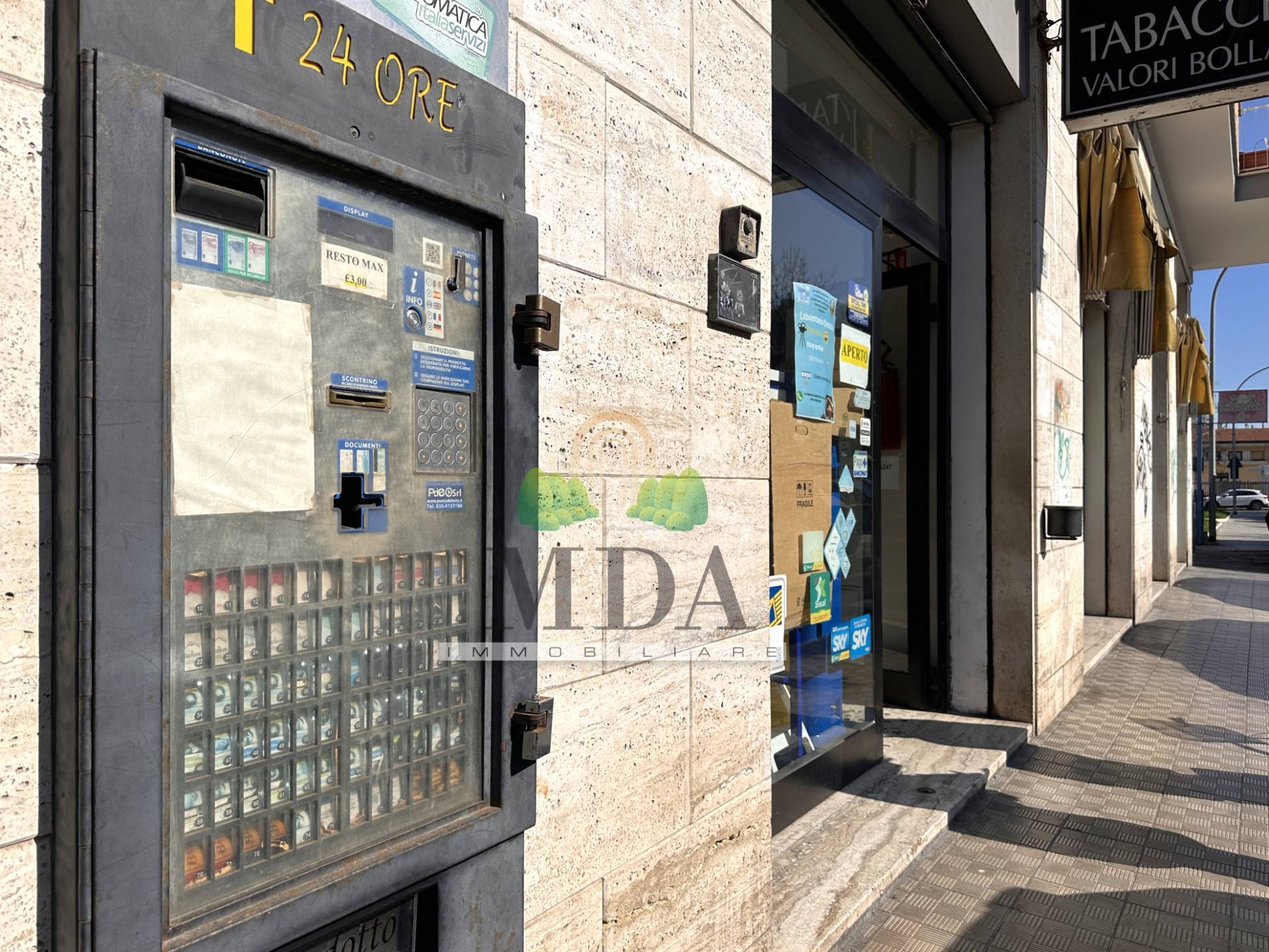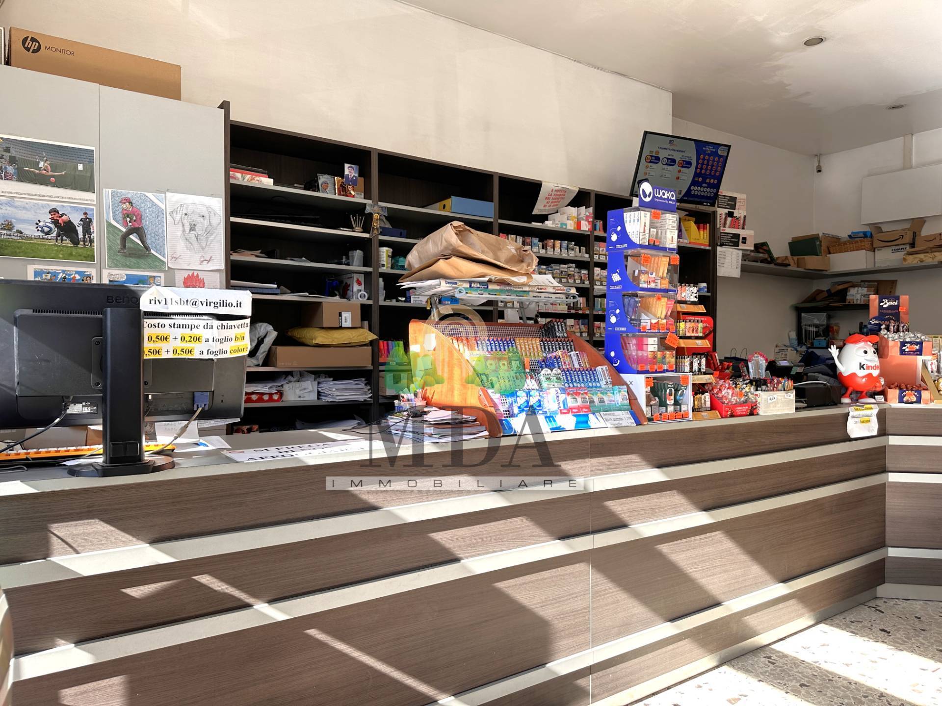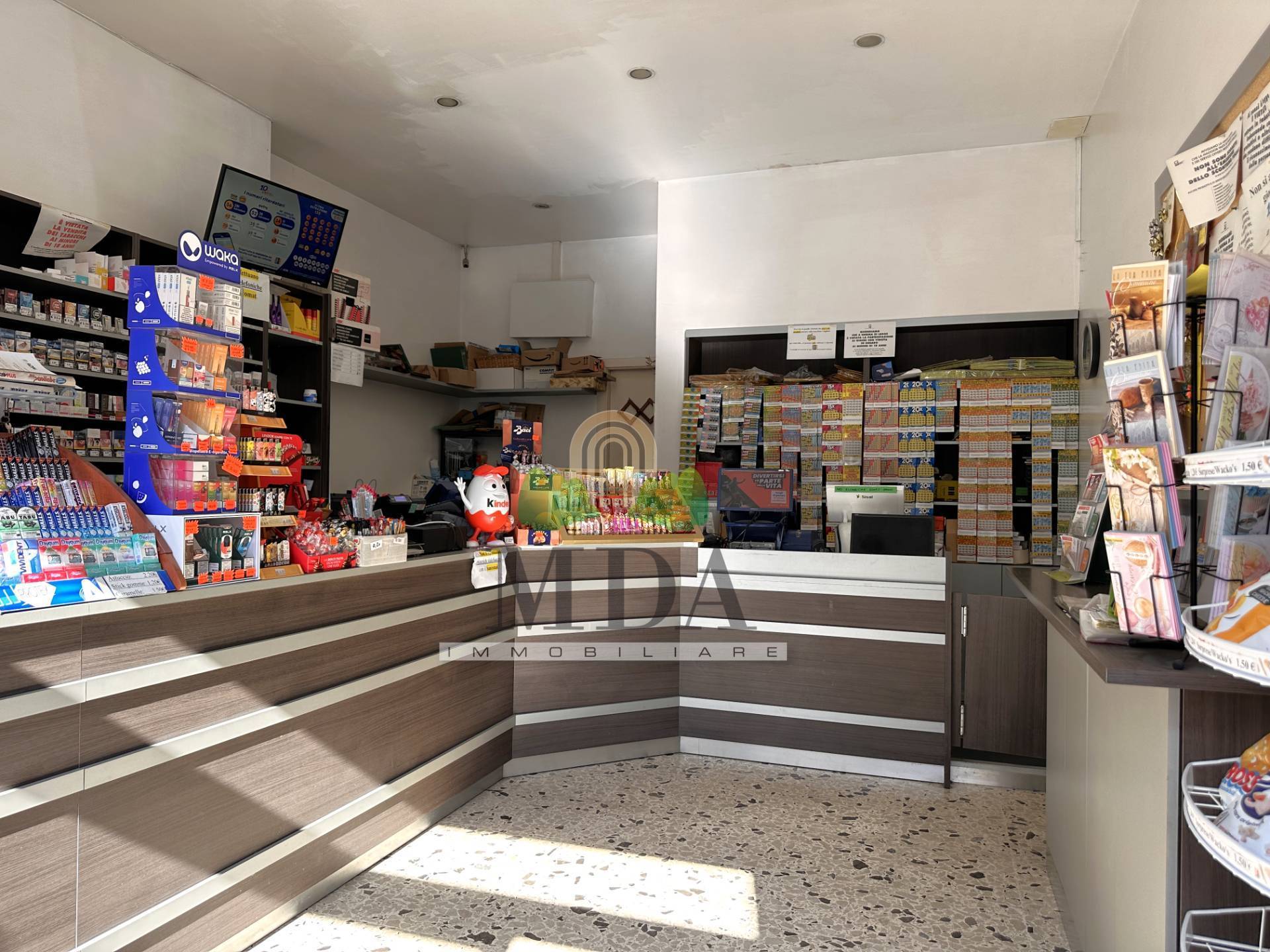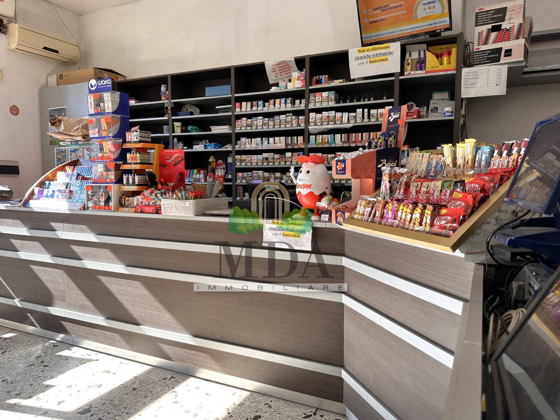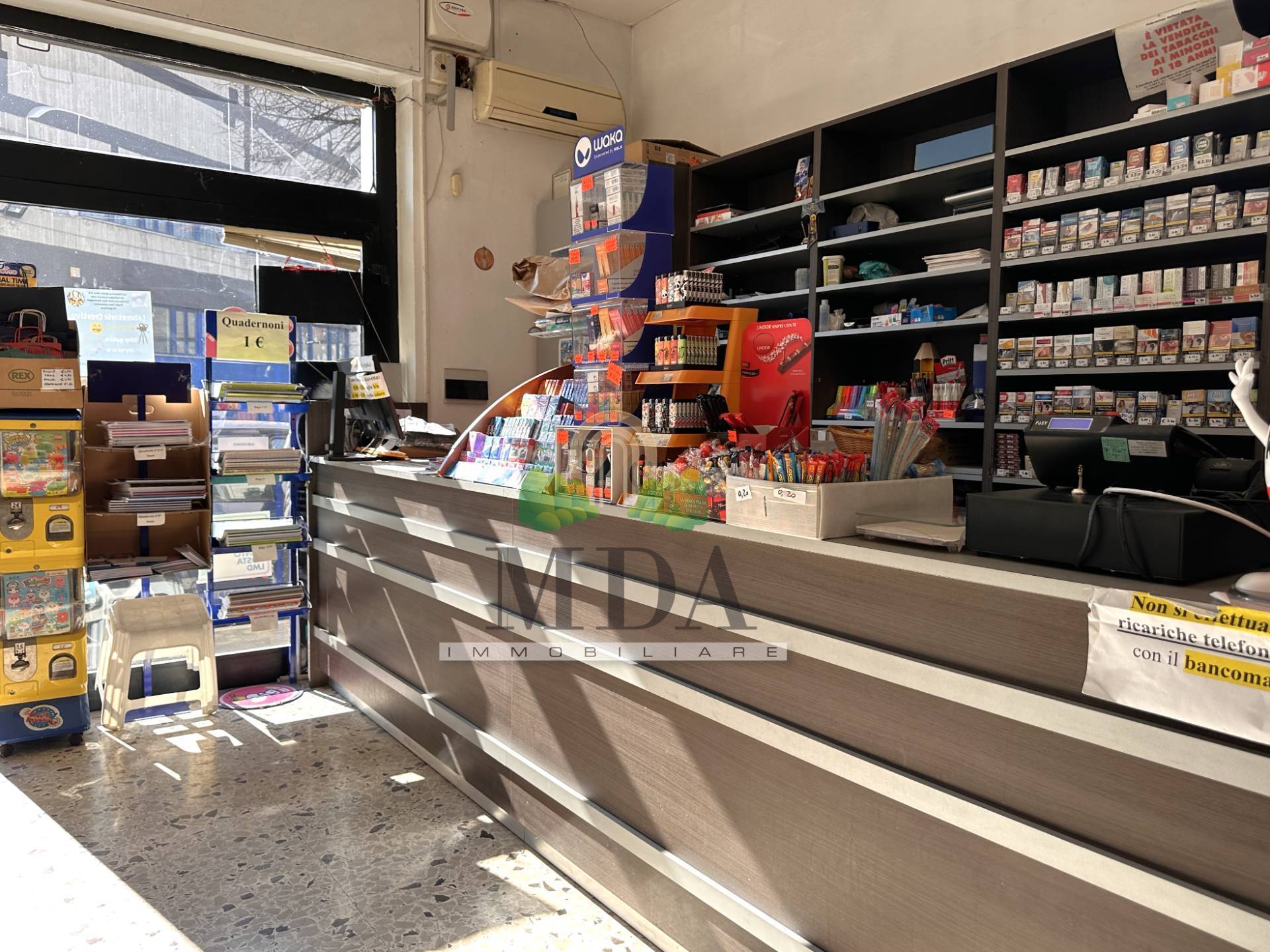 Il locale presenta una vetrina fronte strada, a sud. La tabaccheria dotata di: articoli per fumatori, giochi del lotto, 10 e lotto, SuperEnalotto, gratta e vinci, ricariche telefoniche, ricariche e servizi PostePay, PagoPa, bollettini postali, marche da bollo, servizio fax, fotocopie, stampe da dispositivi digitali, piccola cancelleria, rivendita di snack.