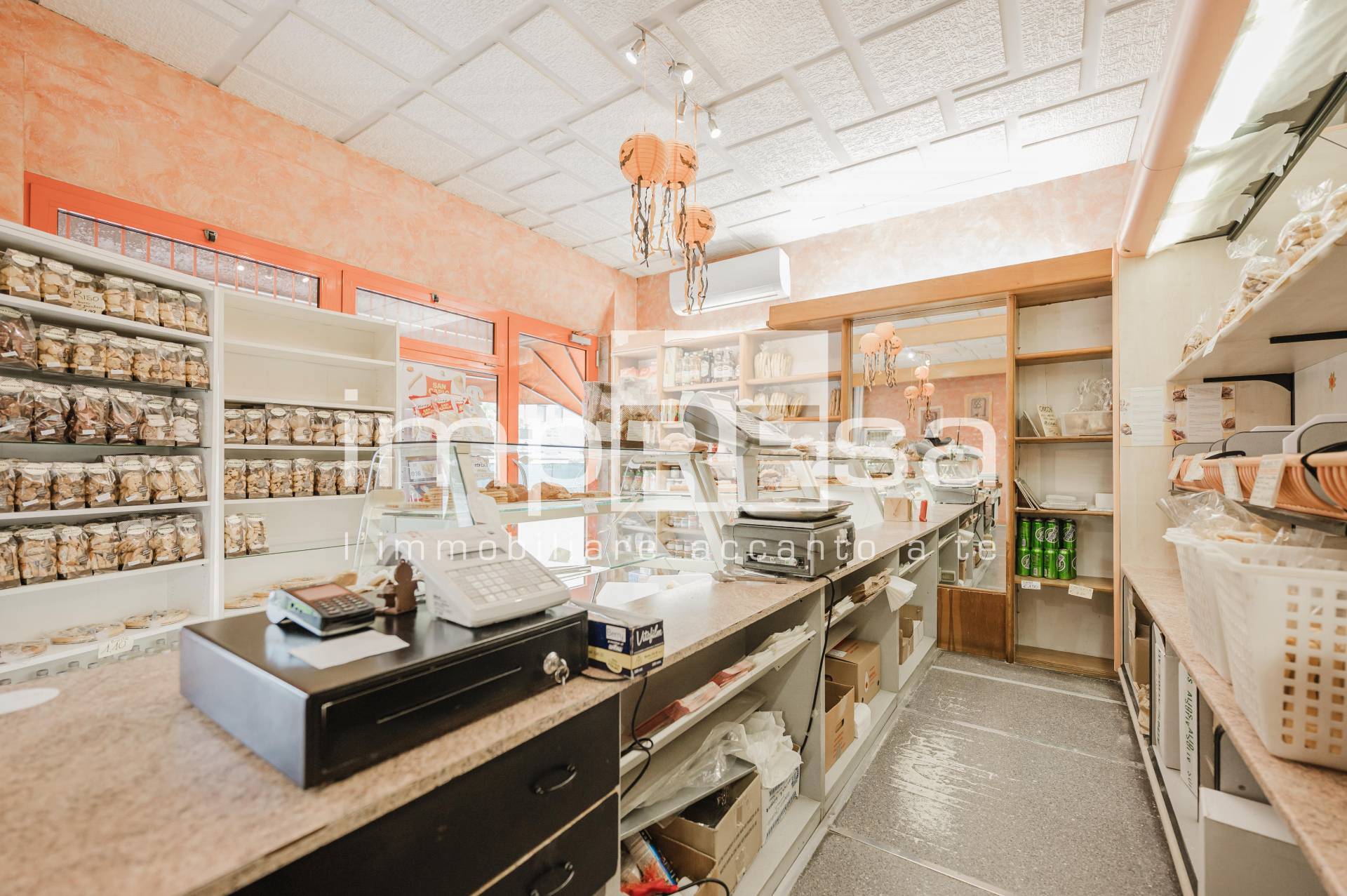 La parte negozio, oltre al bancone, attrezzata per esporre in maniera efficace gli ottimi prodotti di pasticceria secca/biscotteria e varie altre creazioni.