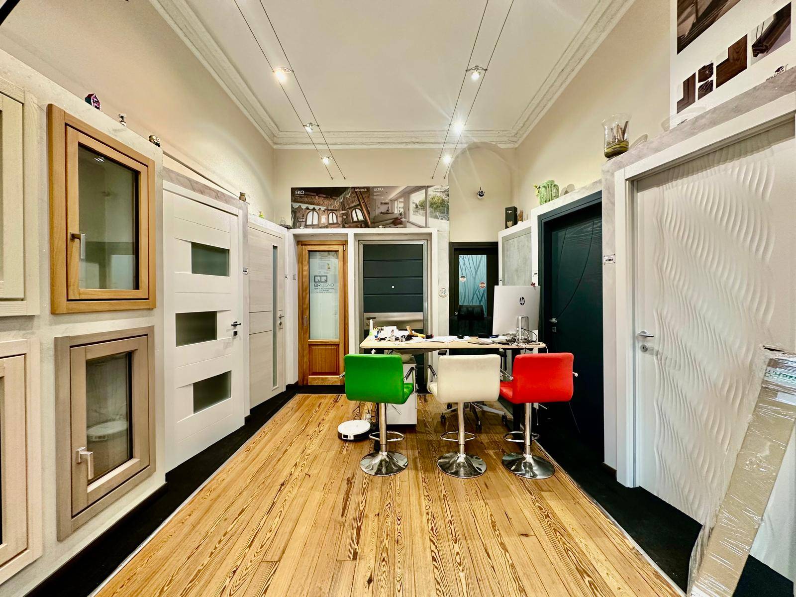 La vetrina in ottime condizioni, sostituita di recente, in pvc con doppio vetro, taglio termico e apertura elettronica.