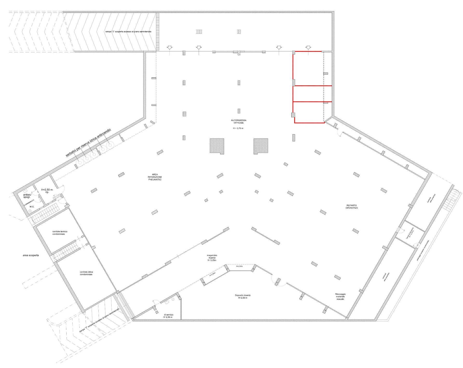 Destinazione autorimessa: per n.75 auto e n.25 motociclette parcheggiate e zona commerciale.