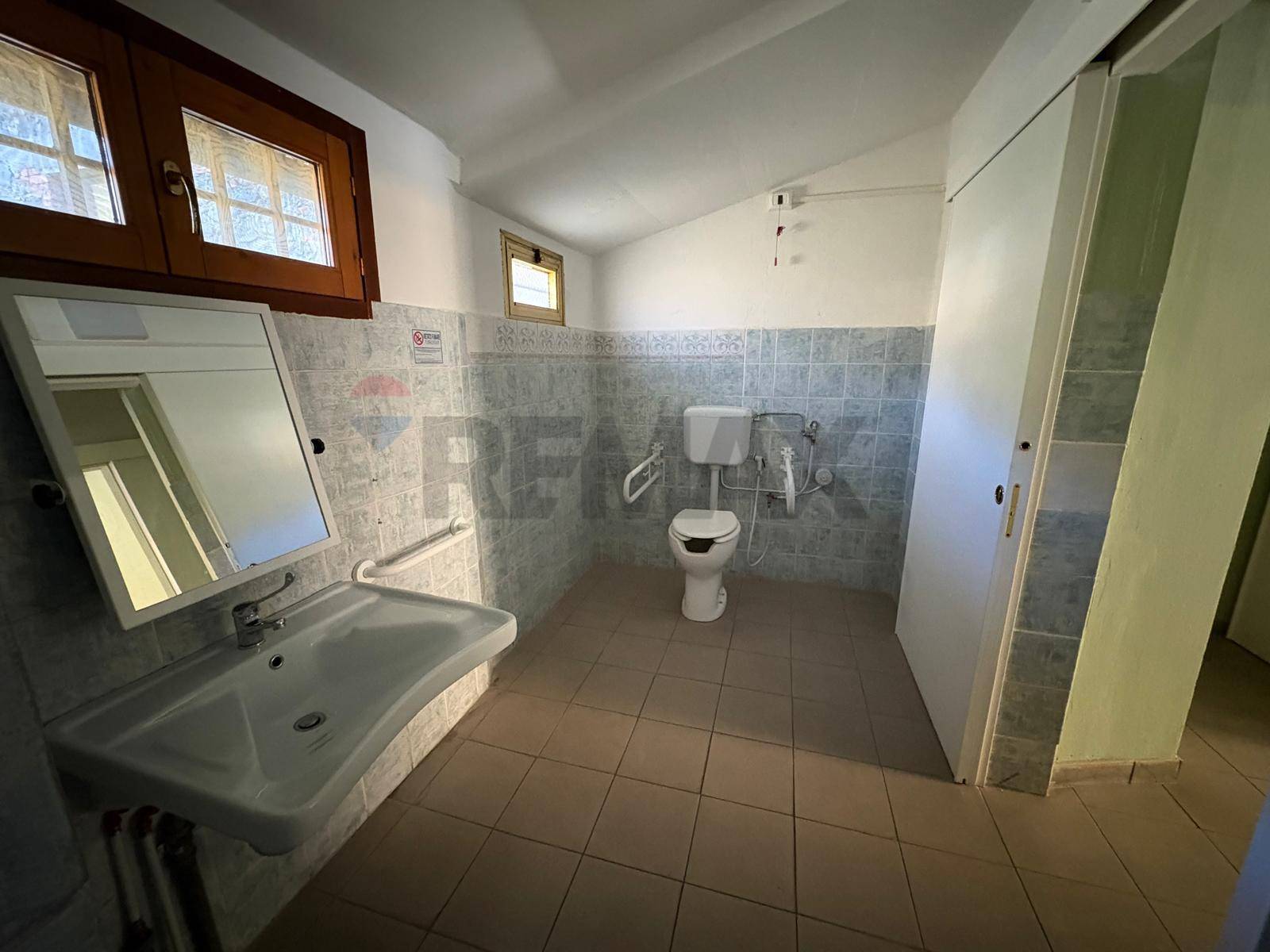 Al piano terra, si accede alla struttura attraverso una veranda coperta e si trova uno spazioso locale ad uso commerciale gi ammobiliato, con un bagno per disabili, una dispensa, uno spogliatoio e un wc per i dipendenti.