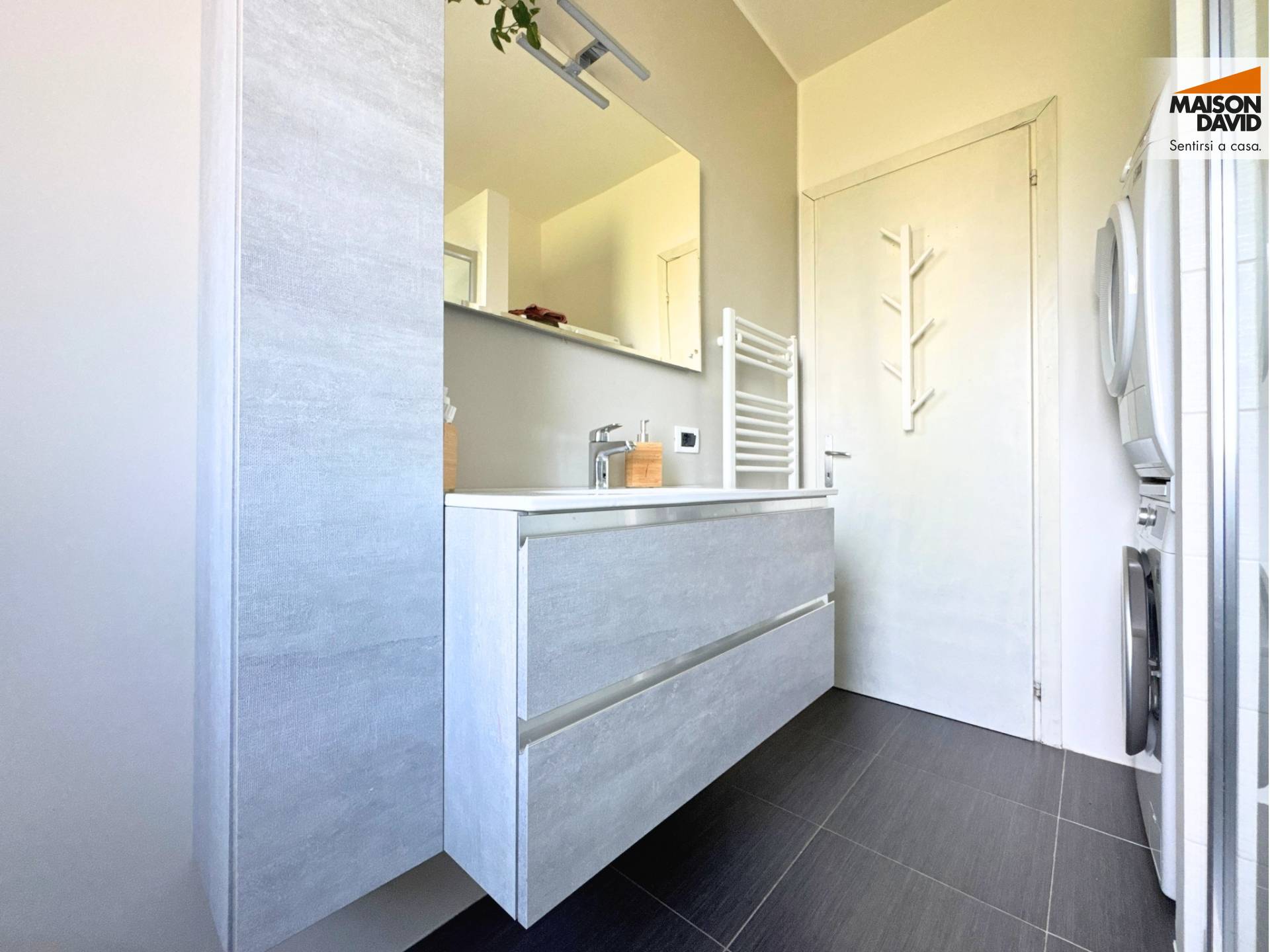 Il bagno finestrato stato completamente rifatto nel 2019 con finiture moderne e una comoda doccia.