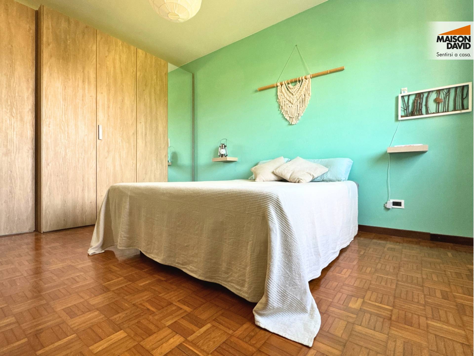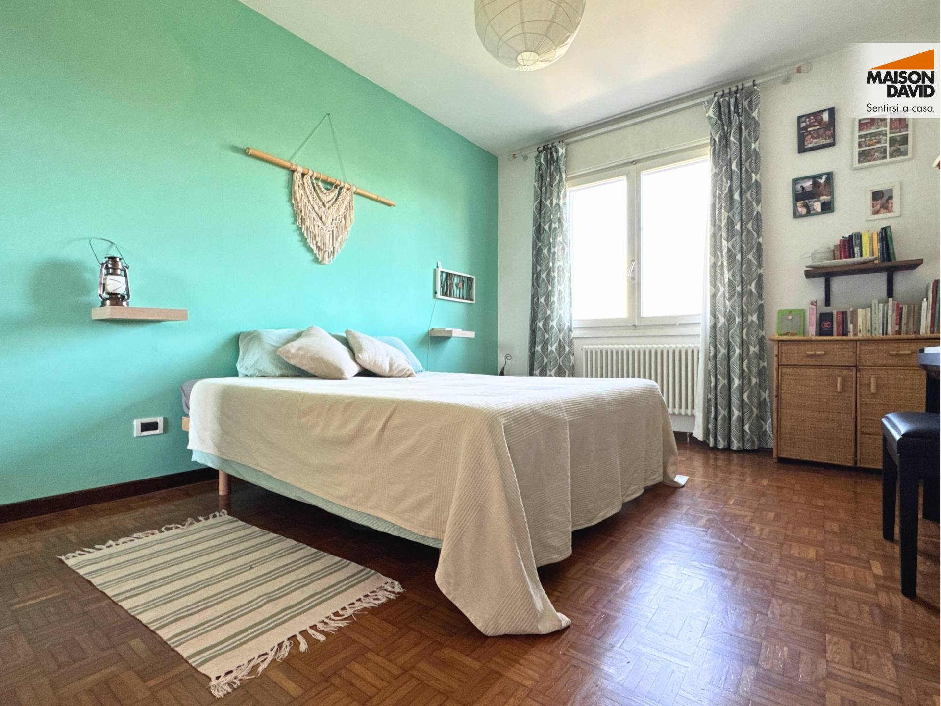 La zona notte composta da due camere dalle dimensioni generose: una matrimoniale di 15 mq e una seconda camera di 12 mq, metratura ormai rara nelle nuove costruzioni.