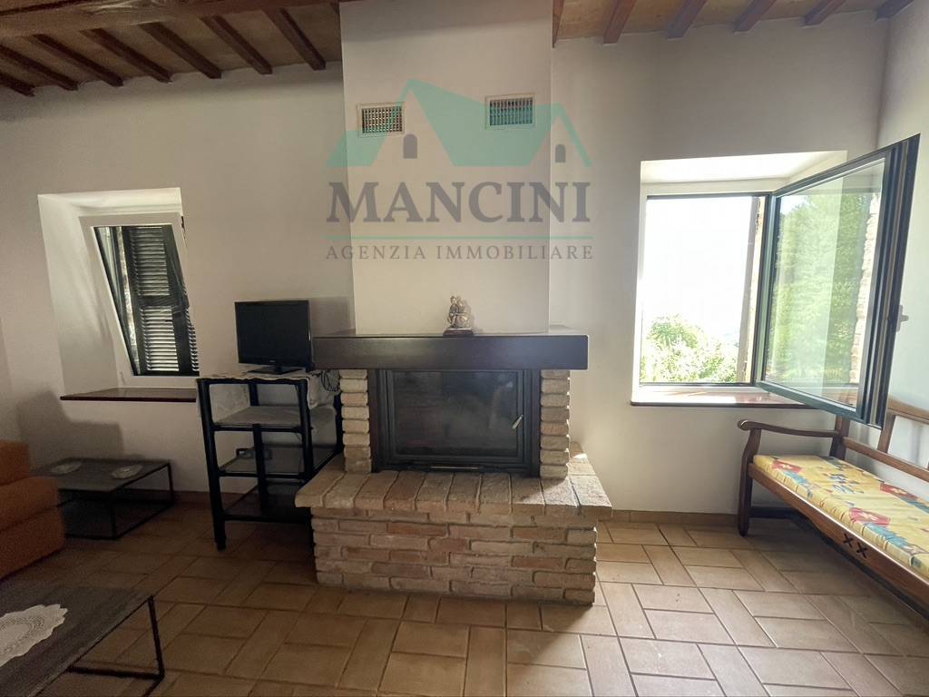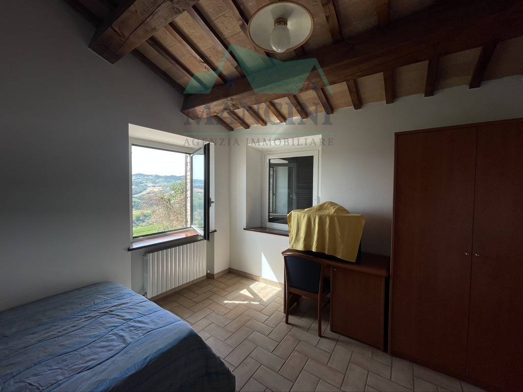 Villa in bifamiliare in affitto a cinque minuti da Cupramontana e dieci da Jesi, con giardino e grande garage ingresso indipendente cielo terra, completamente ammobiliata composta da una zona giorno con camino in pietra ambiente unico con una cucina, con vista su un grande giardino e sulle splendide colline marchigiane, un bagno con doccia, al piano superiore un mansarda finestrata con possibilit di inserire altri due posti letto, la casa e' stata totalmente ristrutturata antisismica esternamente un grande garage doppio e un forno in pietra.
