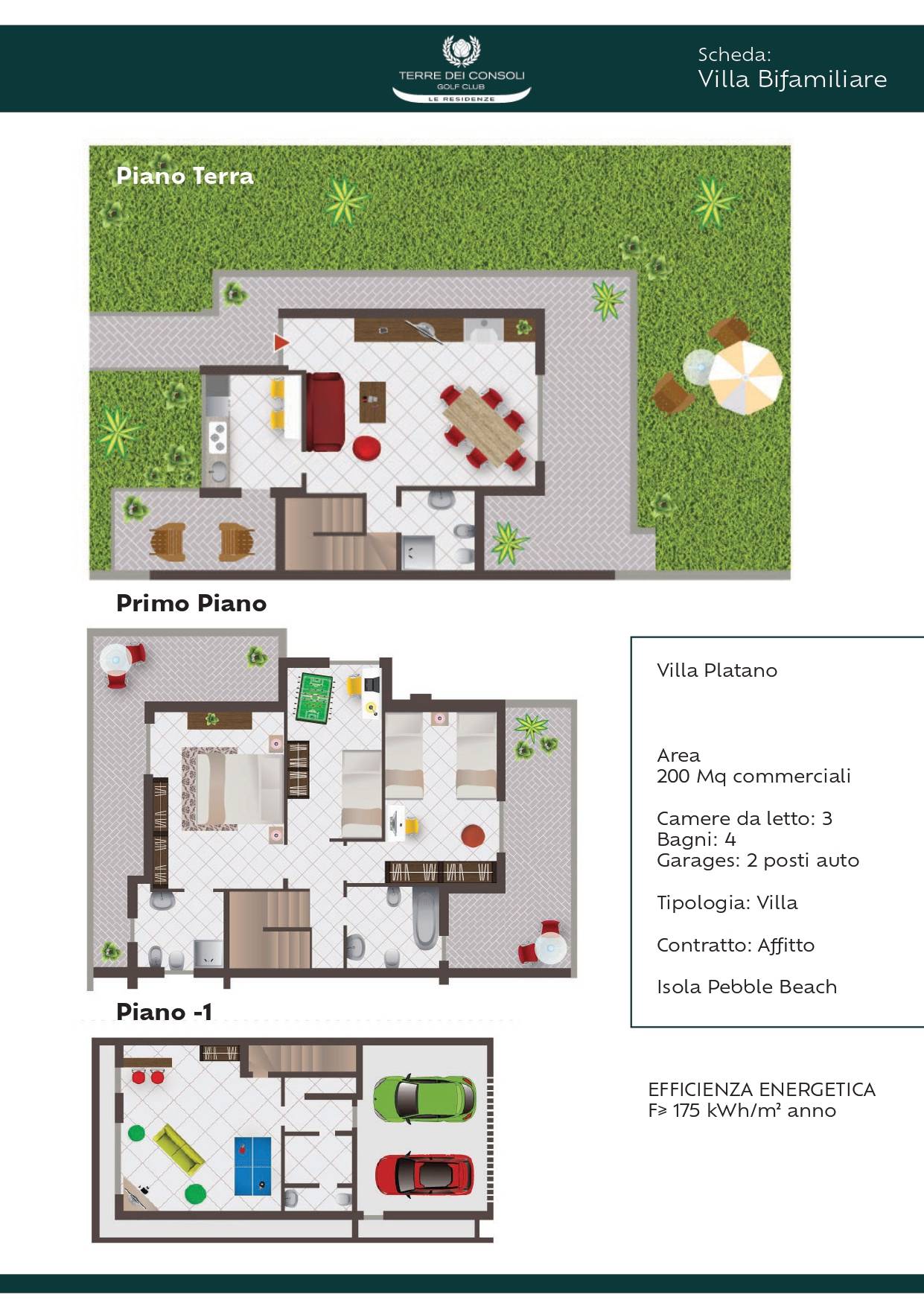 In una posizione tranquilla e riservata a Monterosi, nel cuore del prestigioso golf club Terre dei Consoli, disponiamo di un elegante e spaziosa Bifamiliare disponibile in affitto, in ottimo stato di conservazione .L'immobile si sviluppa su tre livelli: composto da salone con camino, cucina, bagno e giardino privato al piano terra; tre camere, due bagni e due balconi al primo piano; doppio box auto , lavanderia, bagno e sala hobby al piano seminterrato.