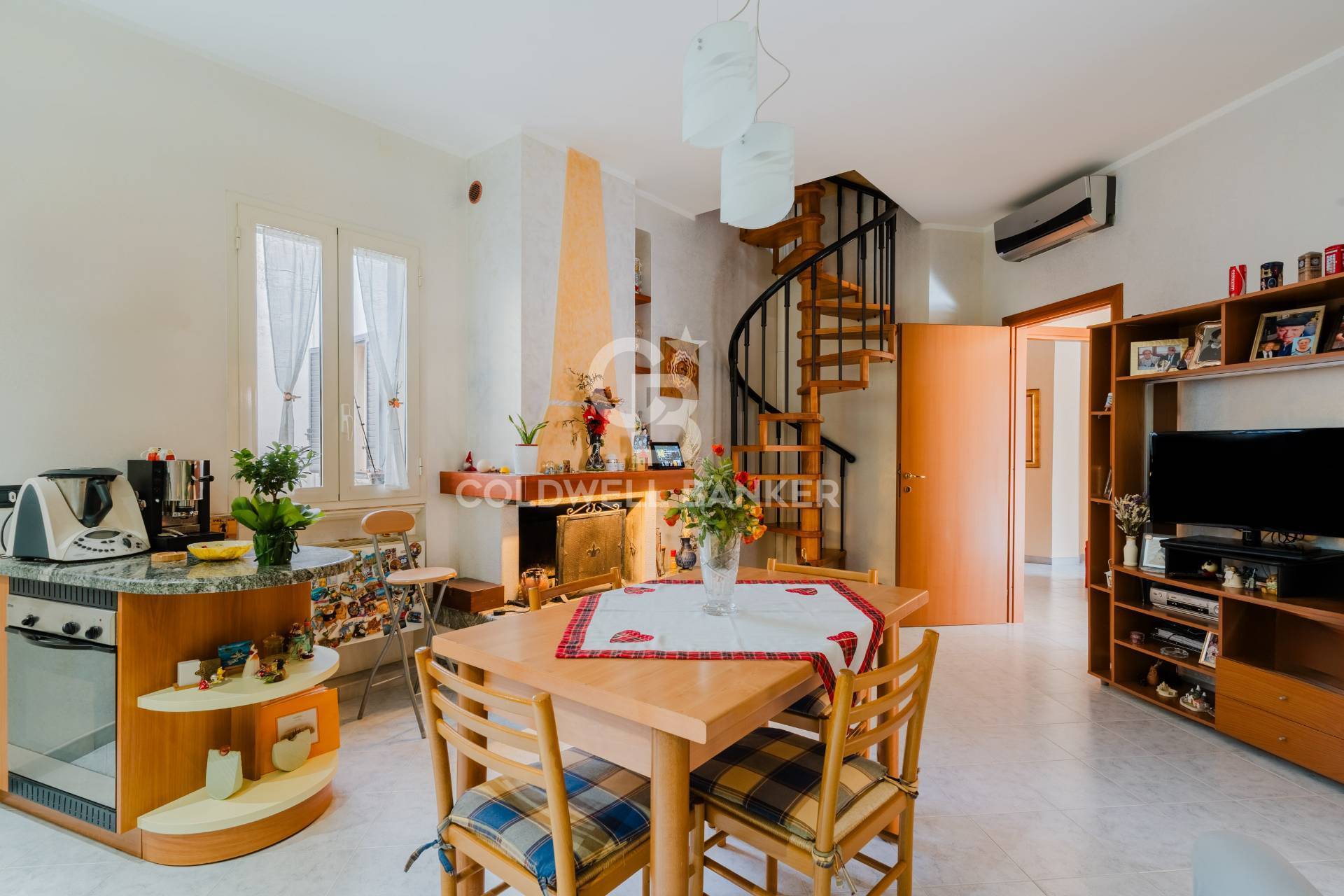 Da qui parte una comoda scala in legno che collega direttamente alla mansarda e alla terrazza, garantendo un accesso pratico agli spazi superiori senza dover utilizzare le scale comuni.