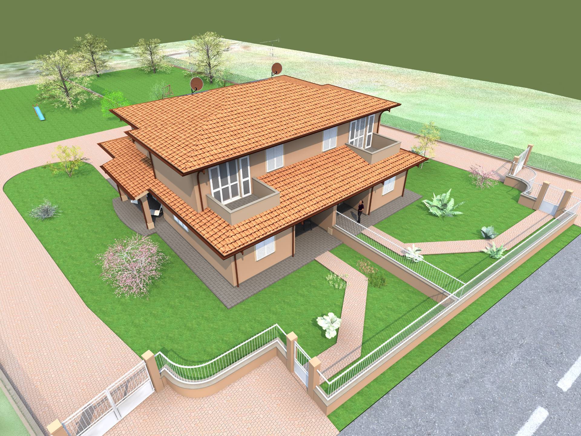 La progettazione degli spazi interni offre ogni confort: al piano terra troviamo l' Ingresso da porticato in soggiorno di oltre 25 mq, una grande cucina abitabile di 20 mq con affaccio sul porticato, bagno ed uno studio o cameretta, ripostiglio; al piano primo da una camera matrimoniale con terrazzo, due camere doppie ed il bagno; Una comoda lavadenderia esterna, ma adiacente alla zona giorno, rende l'utilizzo ottimale per mantenere l' ordine in casa. Il portico gira su tutti e tre lati di circa 30 mq. il giardino di oltre 1.000 mq. Classe energetica prevista la B. Contatta l'inserzionista