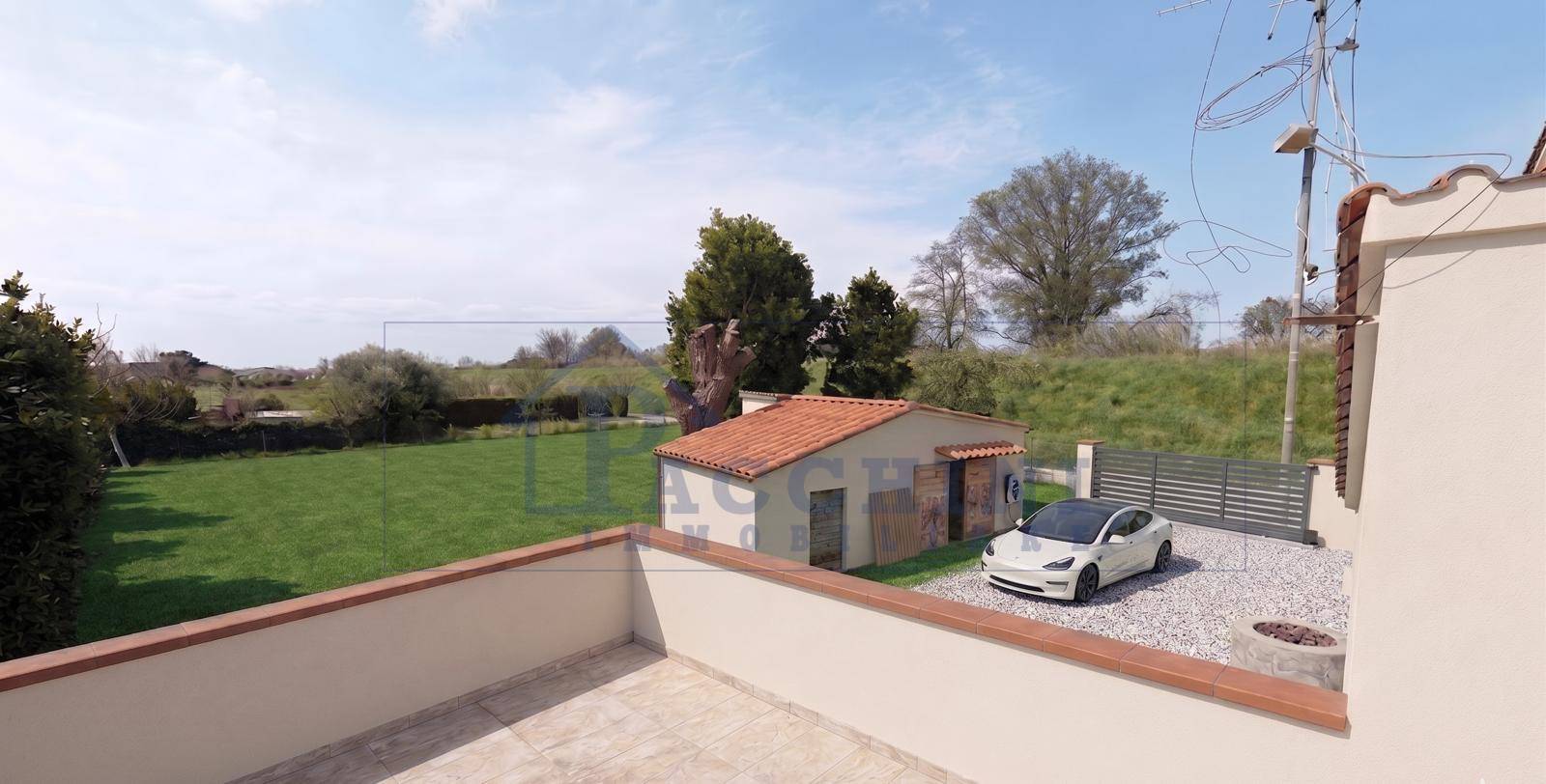 La casa circondata da un ampio giardino privato di circa 2.000 mq, perfetto per chi desidera vivere gli spazi esterni in piena libert, con la possibilit di parcheggiare pi auto. Predisposizione di impianto di irrigazione e impianto luce tutto intorno al giardino e predisposizione per colonnina elettrica per ricarica auto. IMPIANTO FOTOVOLTAICO 3,5 KW con possibilit di ampliamento e di accumulo.