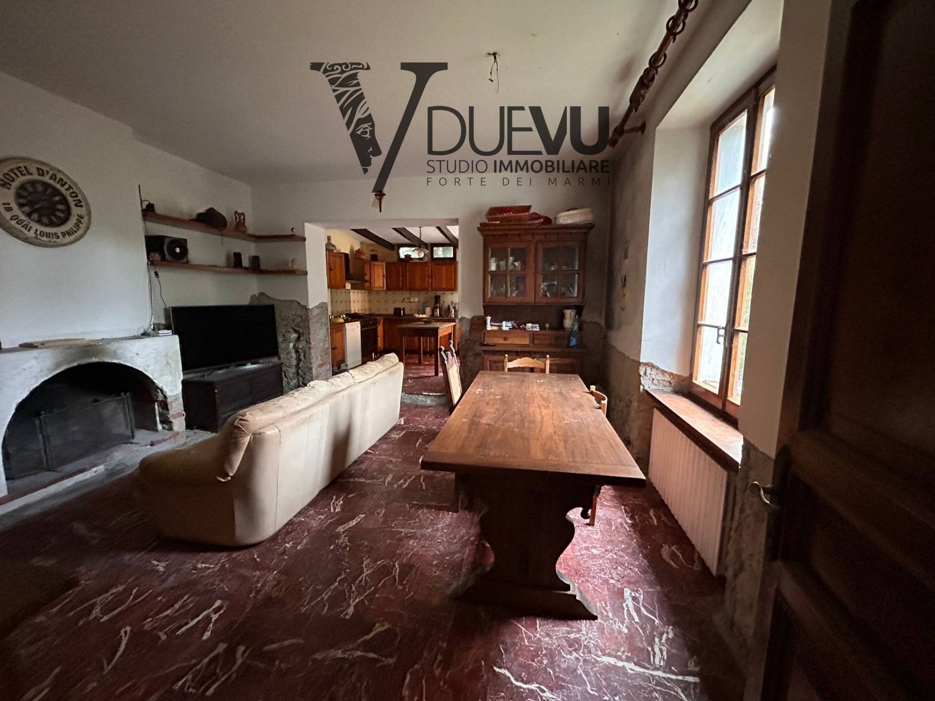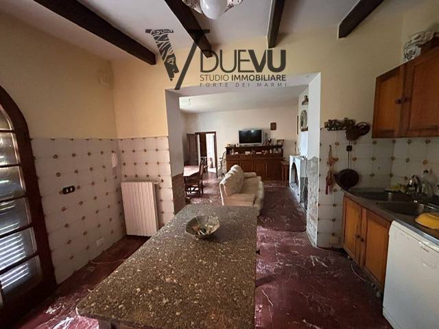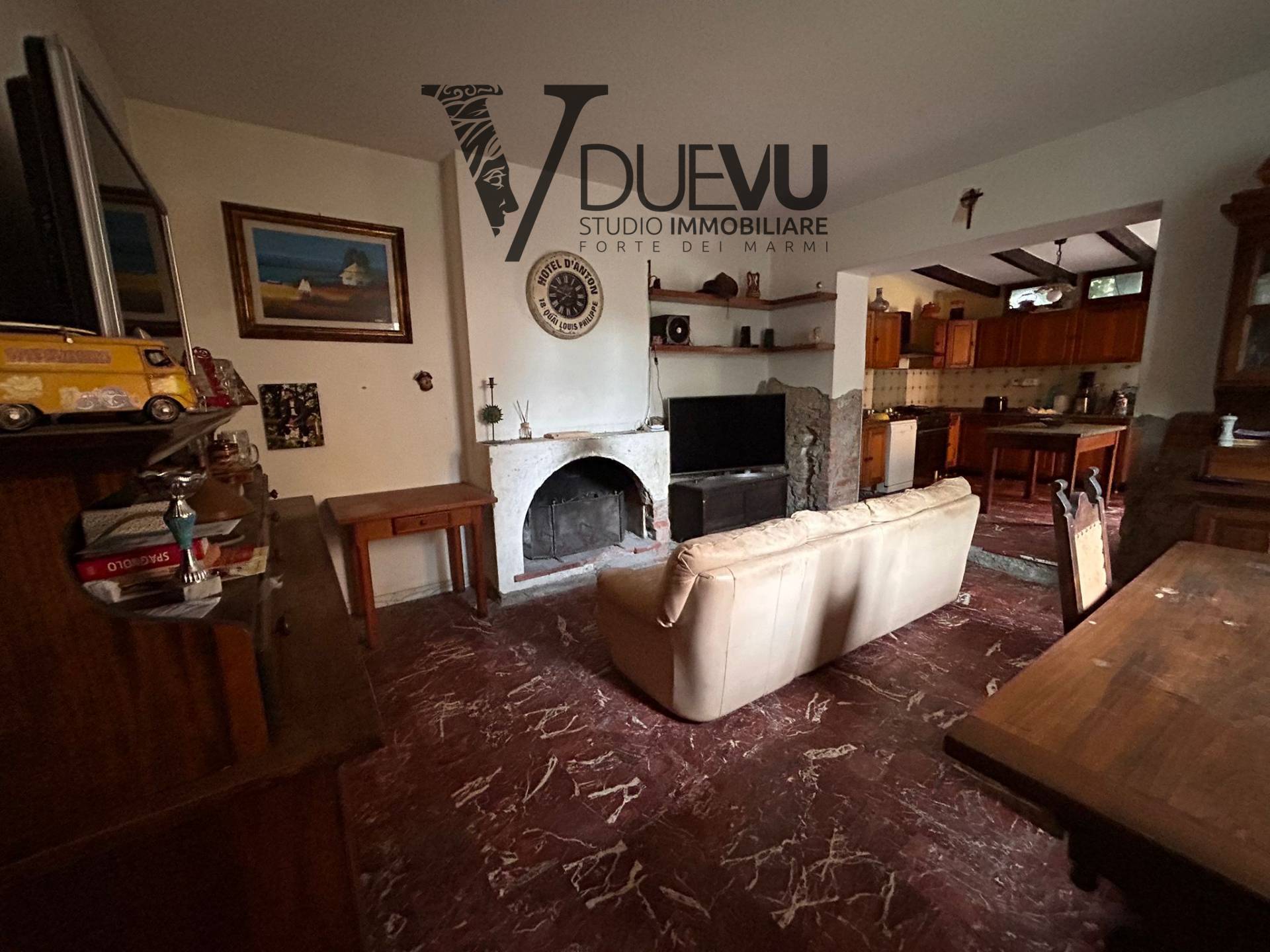 Querceta, in zona centrale, bifamiliare con giardino su un lato. L'immobile da ristrutturare ed composto: al Piano Terra da ingresso, sala da pranzo, zona giorno con caminetto e cucina.