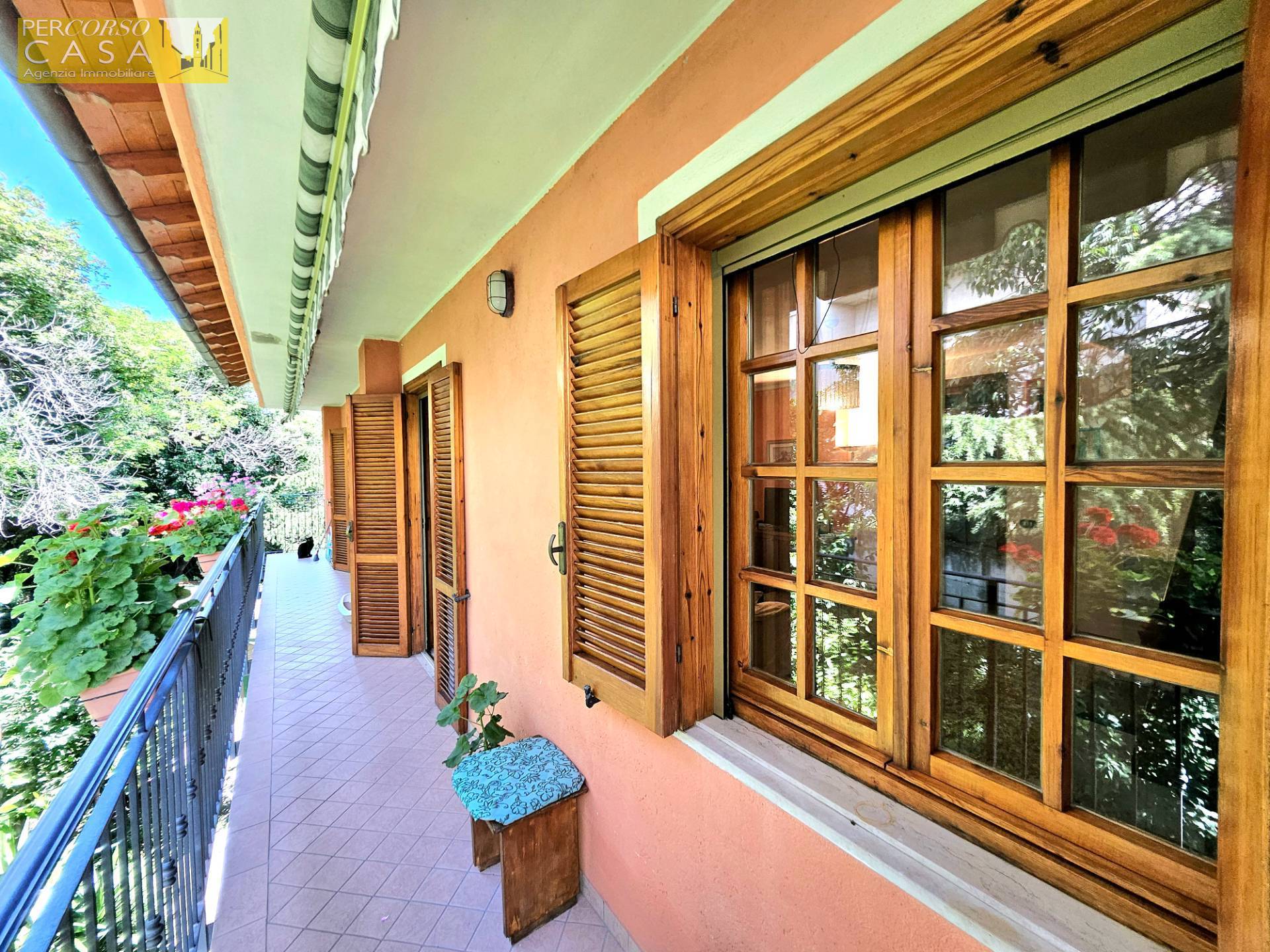 L'appartamento al piano primo dispone di un lunghissimo balcone perimetrale mentre il piano superiore e' dotato di un comodo terrazzo, ideale per godere di momenti all'aperto e di una vista suggestiva sul parco fluviale.