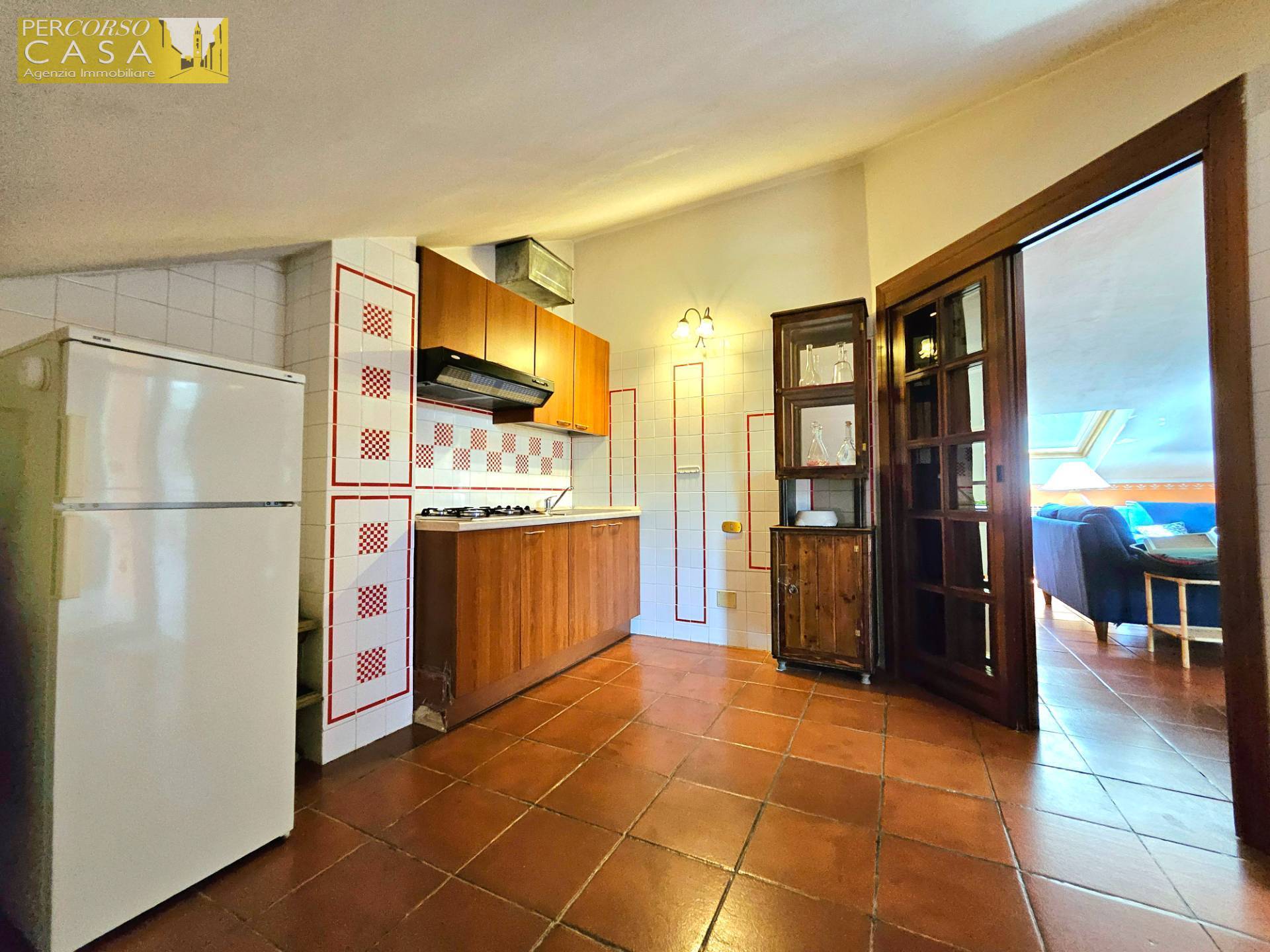 La cucina abitabile attigua al soggiorno accede anch'essa al terrazzo panoramico, mentre la zona notte composta da due camere da letto (una matrimoniale ed una singola) oltre ad un comodo bagno ristrutturato.