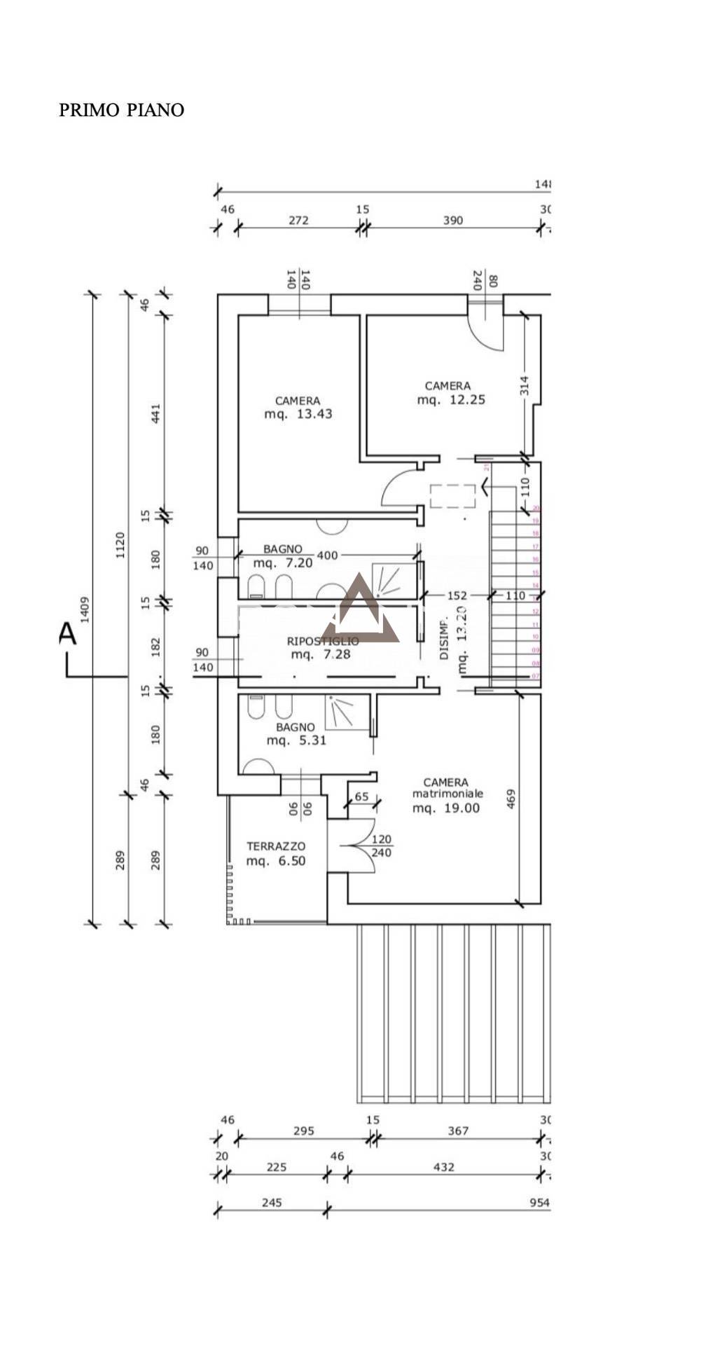 Il piano primo (96,37 mq) ospita una spaziosa camera matrimoniale con bagno privato, due ulteriori camere da letto, un secondo bagno e un ripostiglio funzionale, utilizzabile anche come cabina armadio.