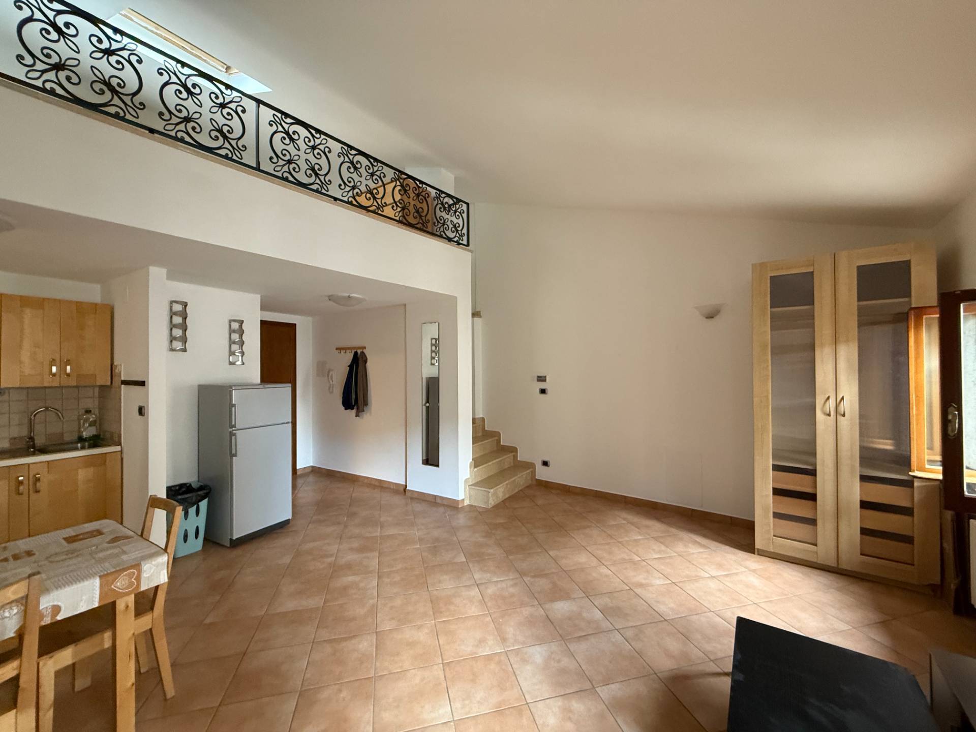 Scala interna che porta ad un soppalco dove troviamo la zona notta con balconata sulla zona giorno + velux.