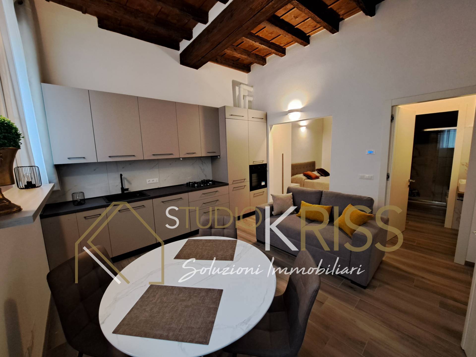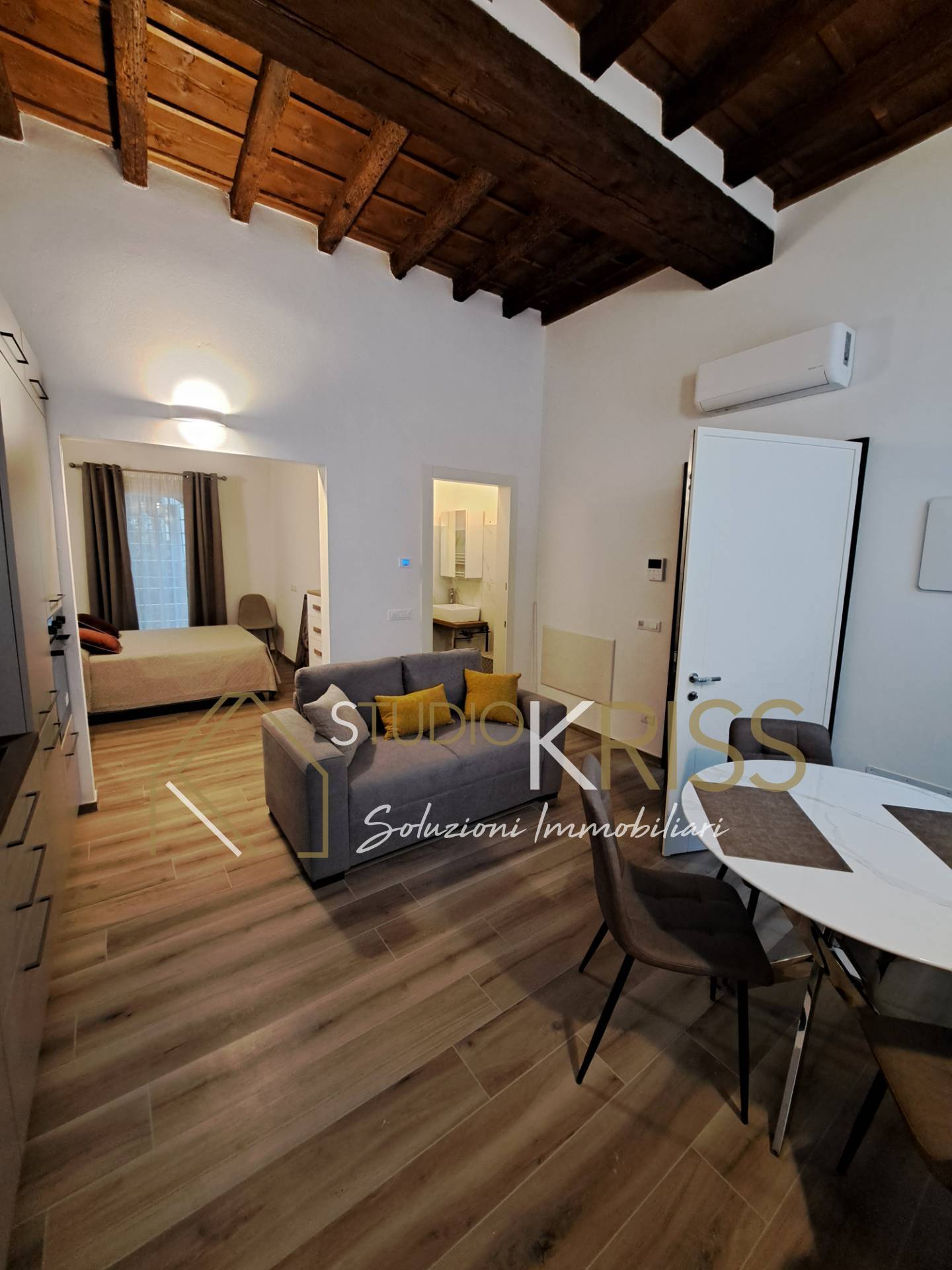 Zona Corso Giovecca, signorile bilocale completamente arredato al piano terra di nuova costruzione, composto da soggiorno con cucina a vista, camera matrimoniale, bagno.