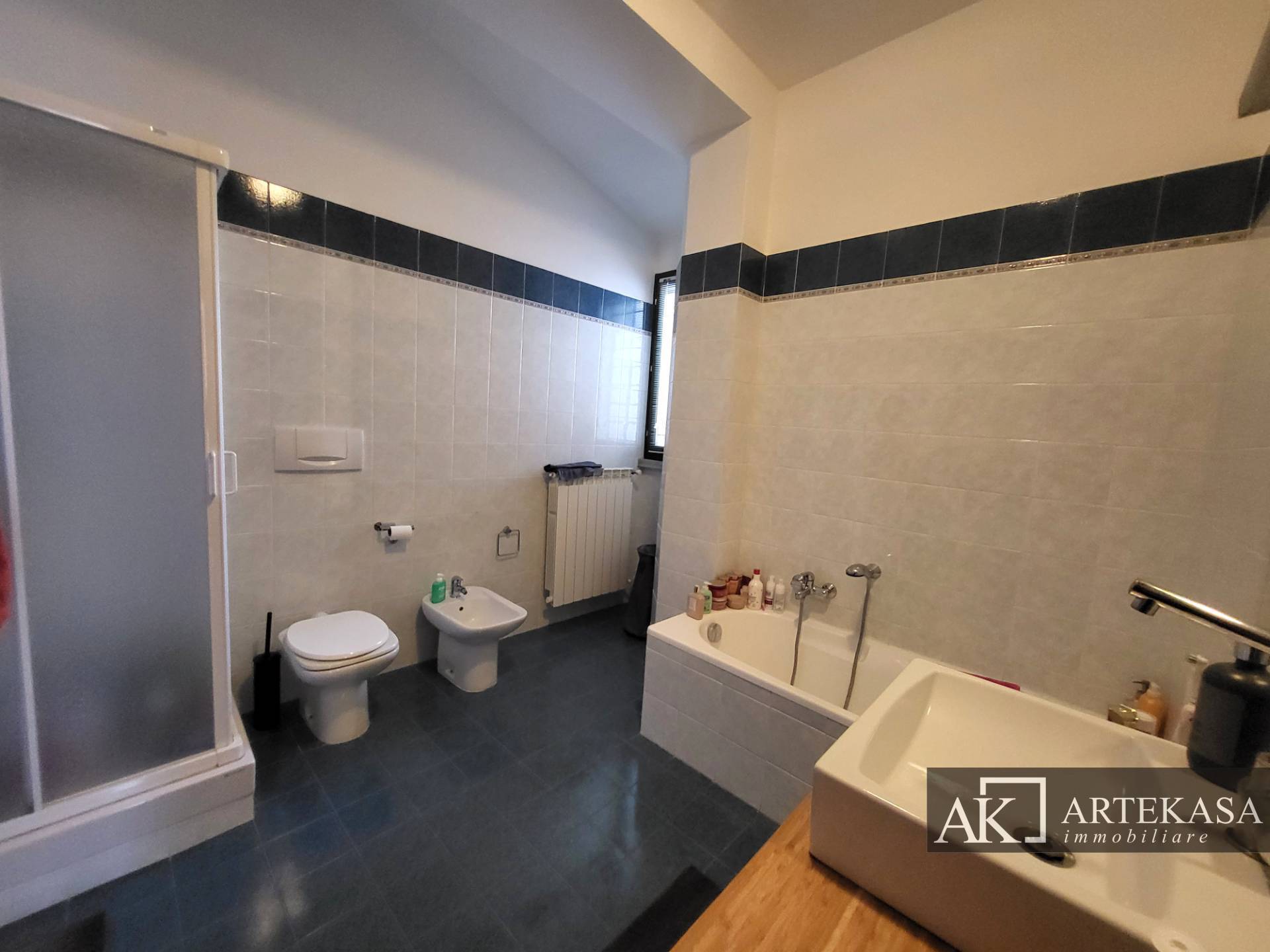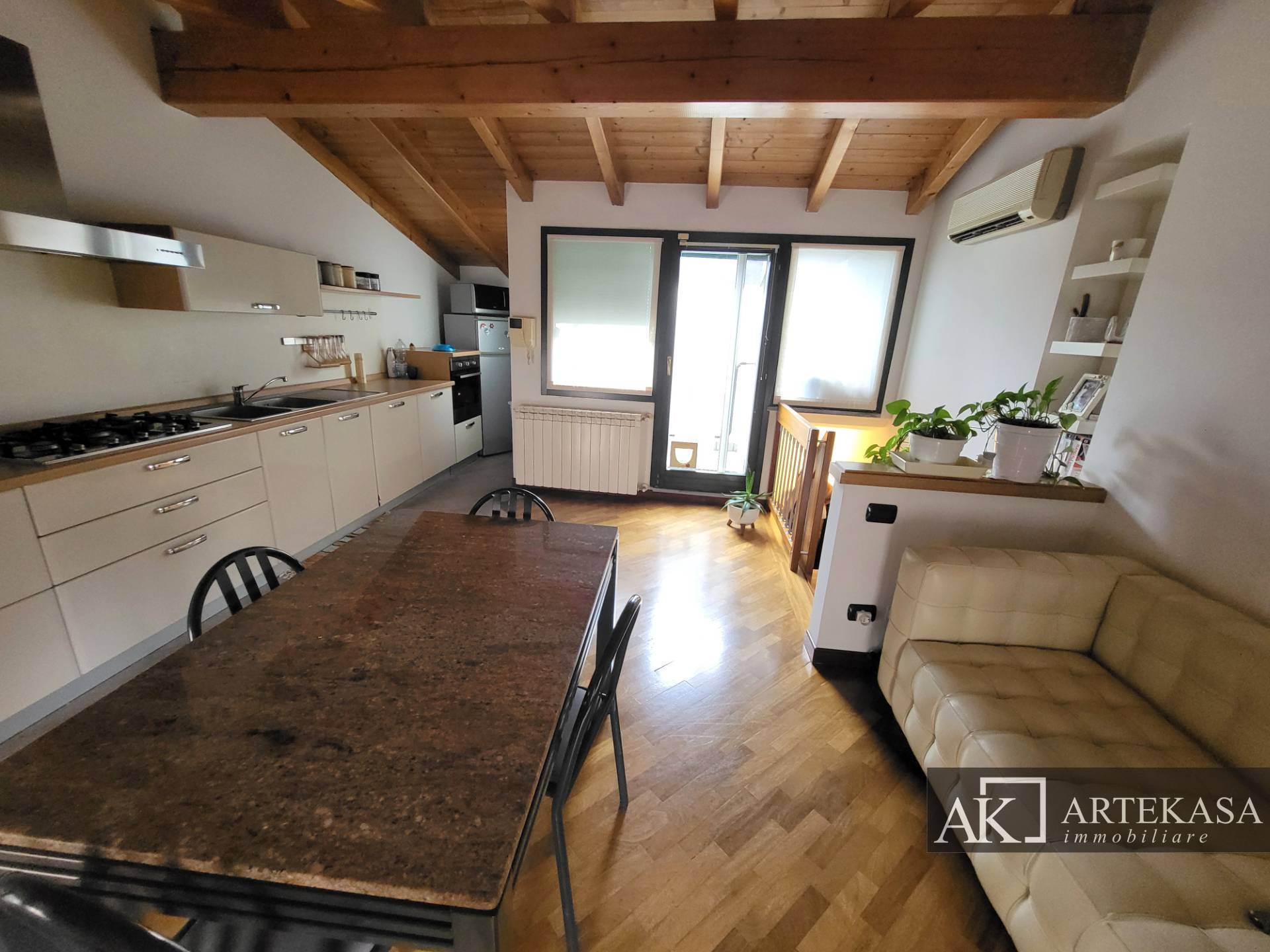 L'alloggio composto da soggiorno, camera da letto e ampio bagno finestrato dotato di vasca e doccia, al piano superiore troviamo un'ampia cucina abitabile dalla quale si accede al terrazzino.