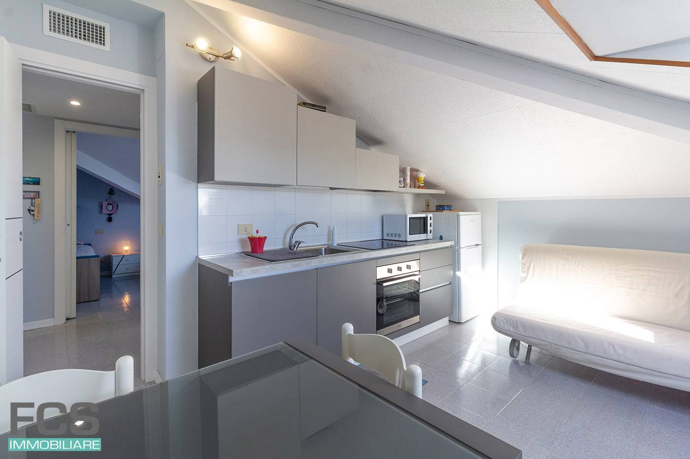 Sai che c'? Un appartamento mansardato, con vista mare! Bilocale con grande camera 3 posti letto, soggiorno con cucina altri 2 posti letto, bagno, con finestra, doccia.
