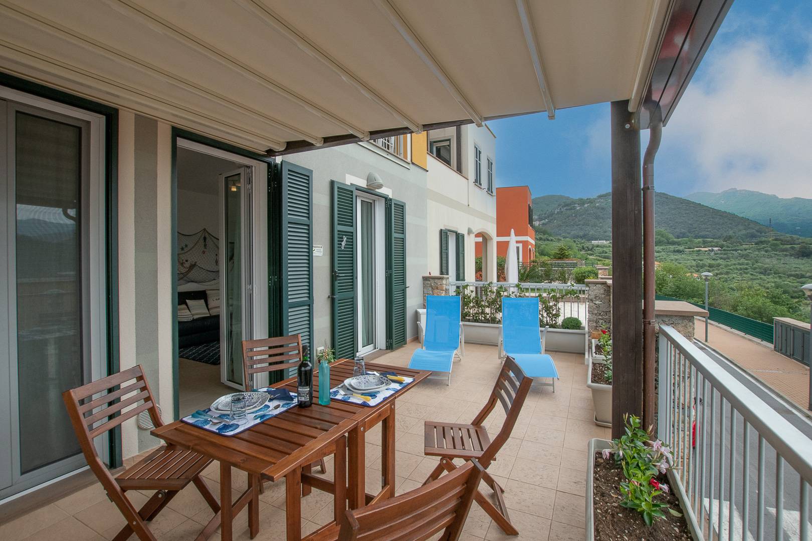Lesterno dotato di nuovo arredo completo di tavolo, sedie, sdraio e fioriere perimetrali.