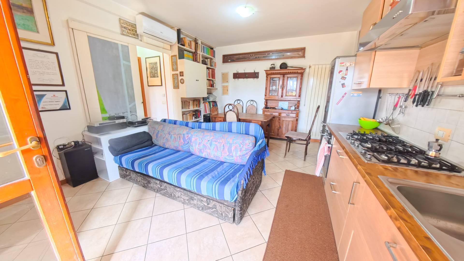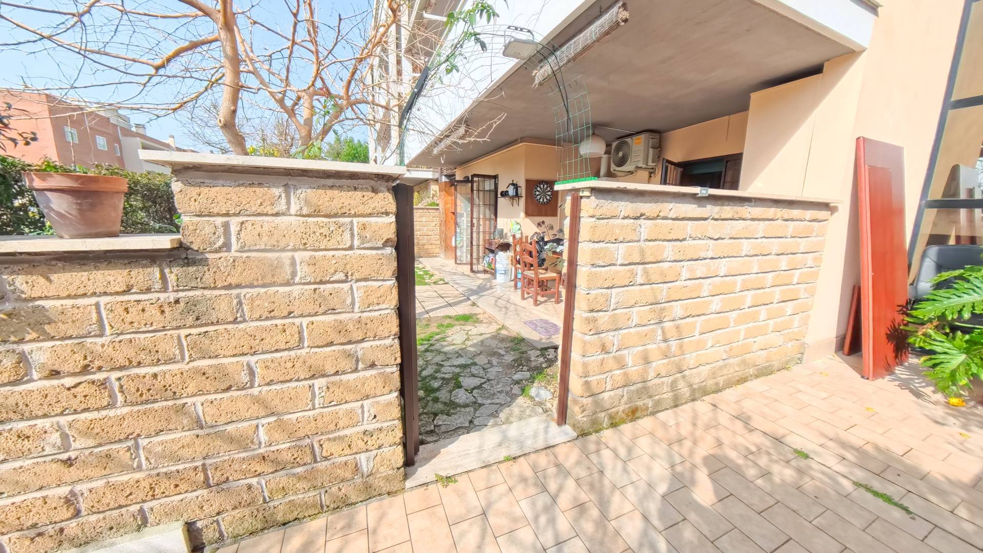 La casa si trova al piano terra di una palazzina recente di soli tre piani in cortina e gode di una caratteristica molto apprezzata: il doppio ingresso.