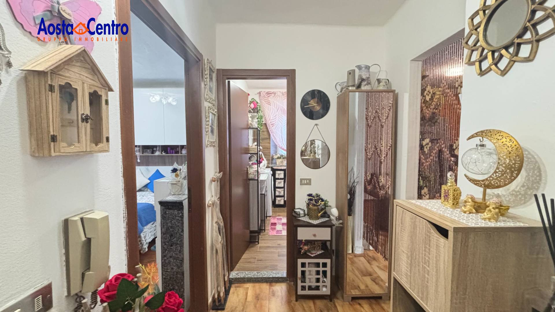 Questa zona ben servita ed stata oggetto di progetti di sviluppo edilizio commerciale, si trova vicino a supermercati e negozi, a circa quattro km dal capoluogo e a pochi minuti dagli impianti di risalita che portano al comprensorio sciistico di Pila. L'appartamento si compone di ingresso su disimpegno, zona living con cucina a vista e balcone esposto a sud, camera matrimoniale con un secondo balcone e un servizio finestrato con doccia.