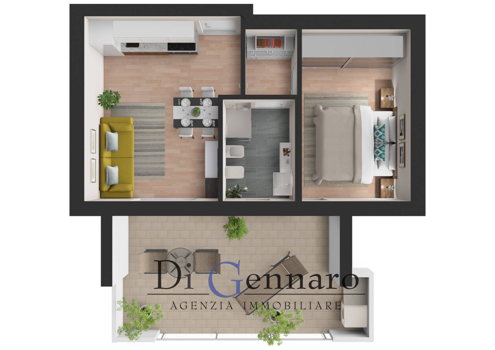 L'appartamento proposto in annuncio un bilocale al primo piano composto da zona giorno con angolo cottura, disimpegno, una camera da letto ed un bagno.