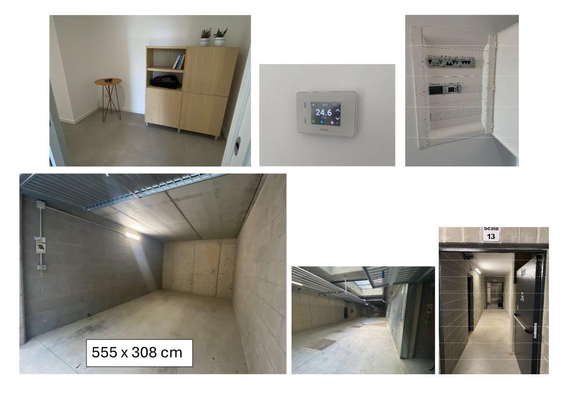 Completa la soluzione un ampio terrazzo coperto a loggia con doppia apertura su soggiorno e cucina, e una cantina di pertinenza situata al piano seminterrato.