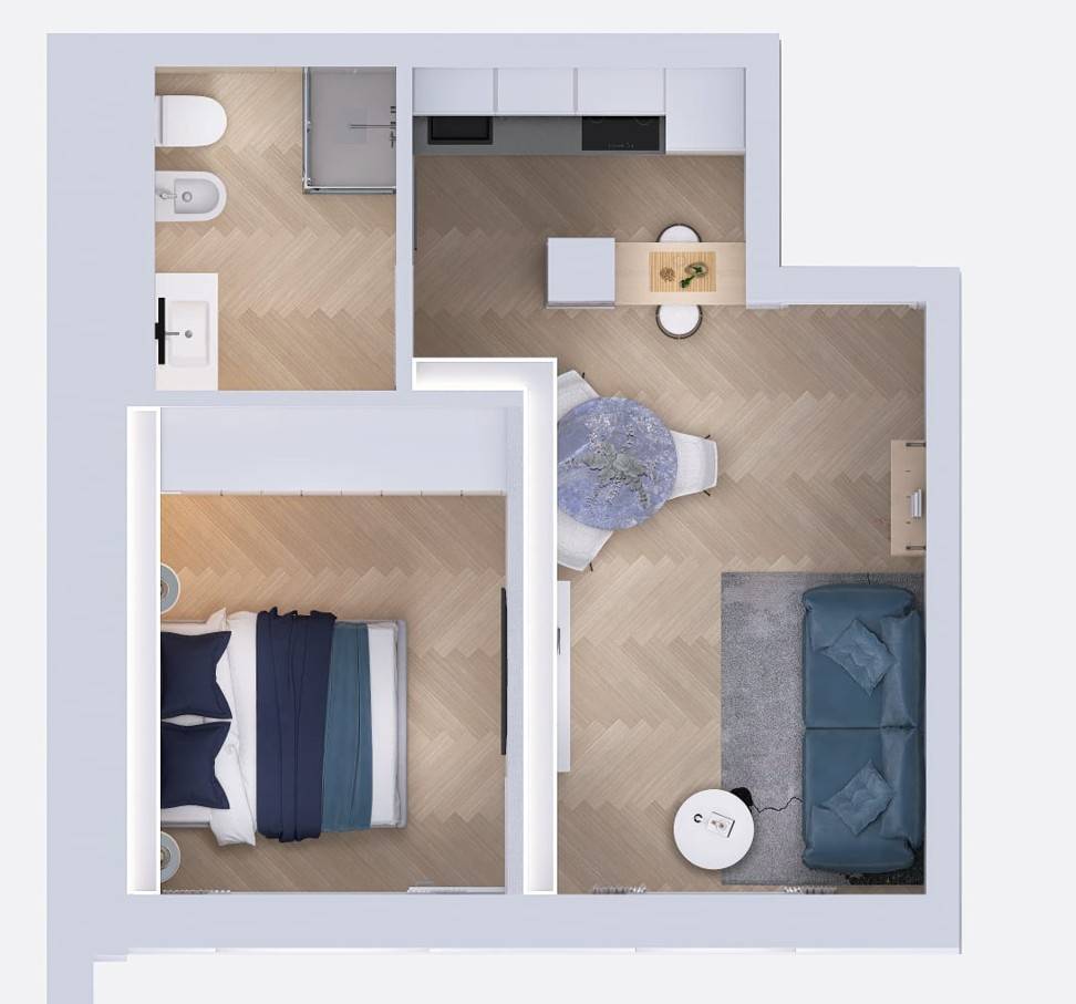 Le unit sono caratterizzate da una metratura media di 48 mq, affacciate sulla tranquilla via residenziale alberata o sul cortile interno, e sono composte da zona living con cucina a vista, camera e bagno.
