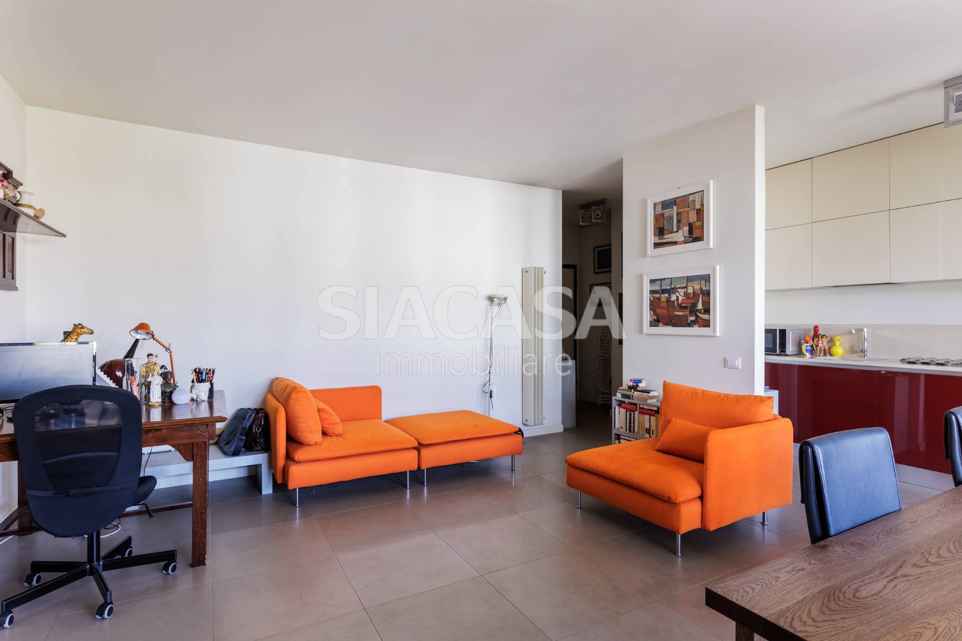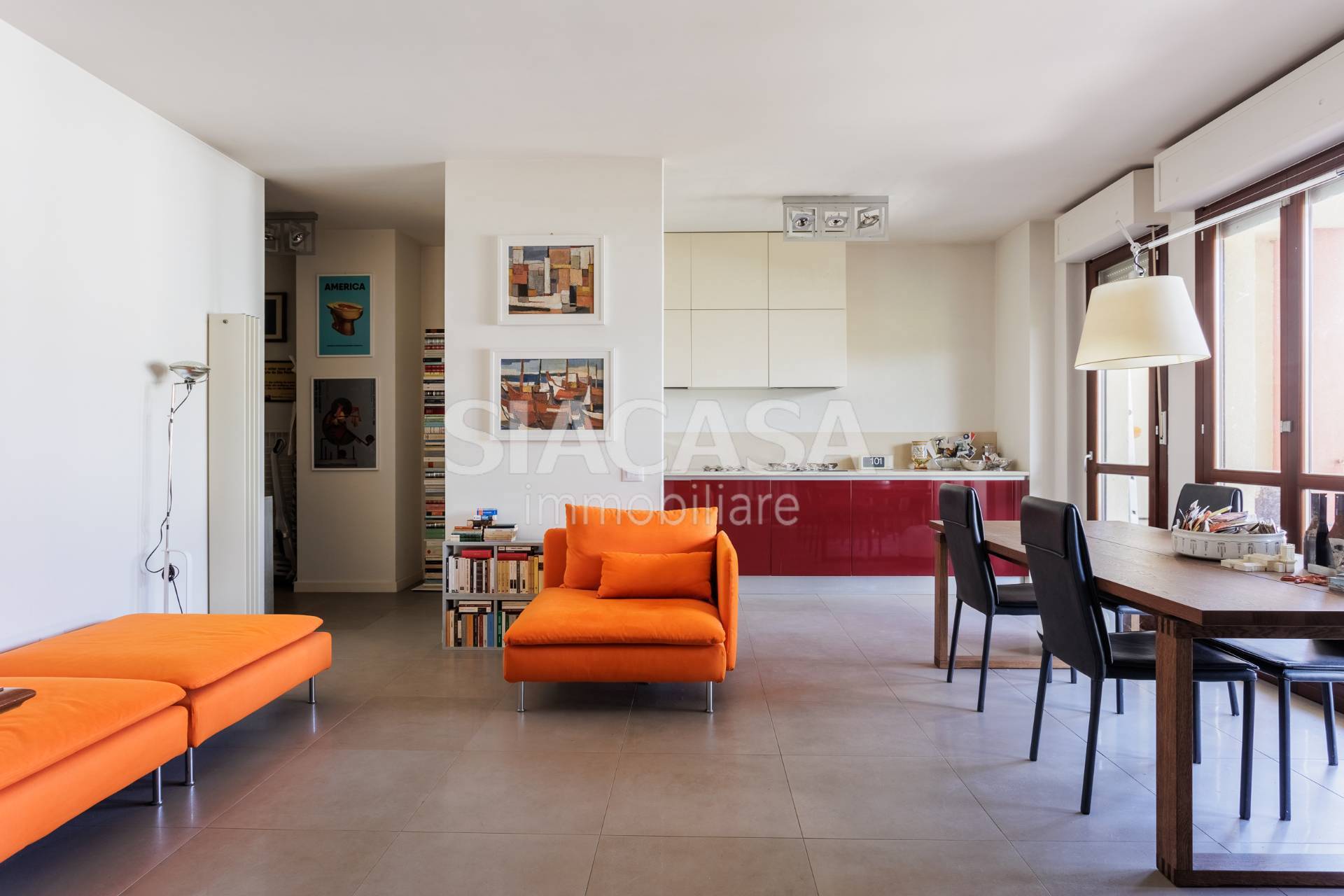 Gli elementi dominanti di questa soluzione abitativa sono lottima esposizione per eccellenza e la distribuzione degli spazi interni nonch lampia vetrata con affaccio sul terrazzo coperto.