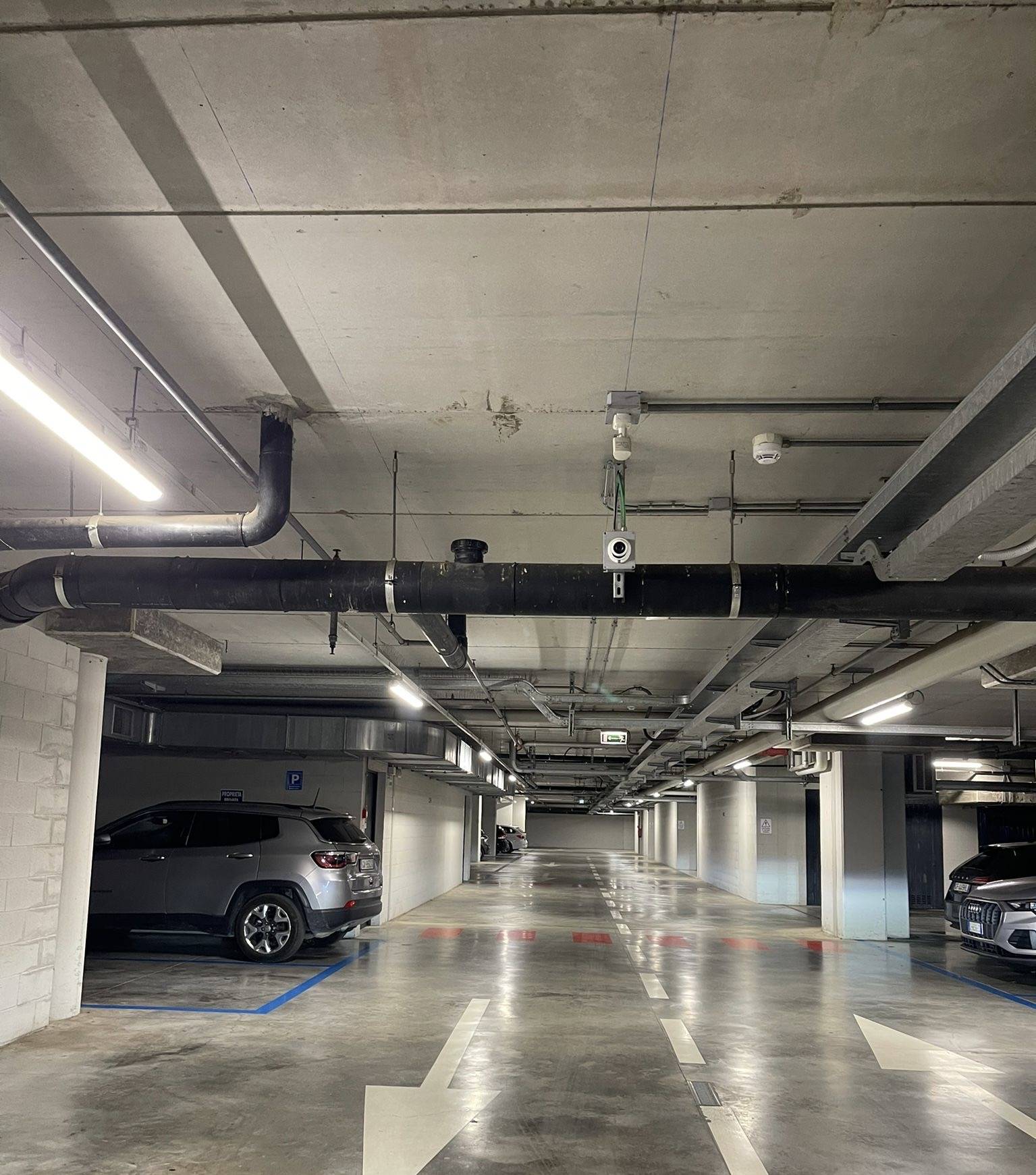 In autorimessa dotata di portone automatizzato, garage per auto di grande dimensione dotato di basculante manuale.