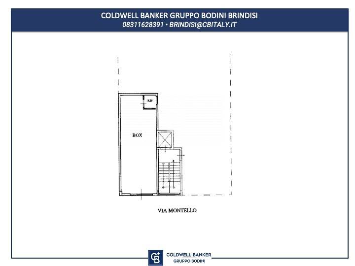 In zona centralissima, in prossimit di una delle arterie della citt di Brindisi "Via Appia", si propone in vendita box auto di 49 mq posto al piano terra, compreso di ripostiglio attualmente adibito a bagno.