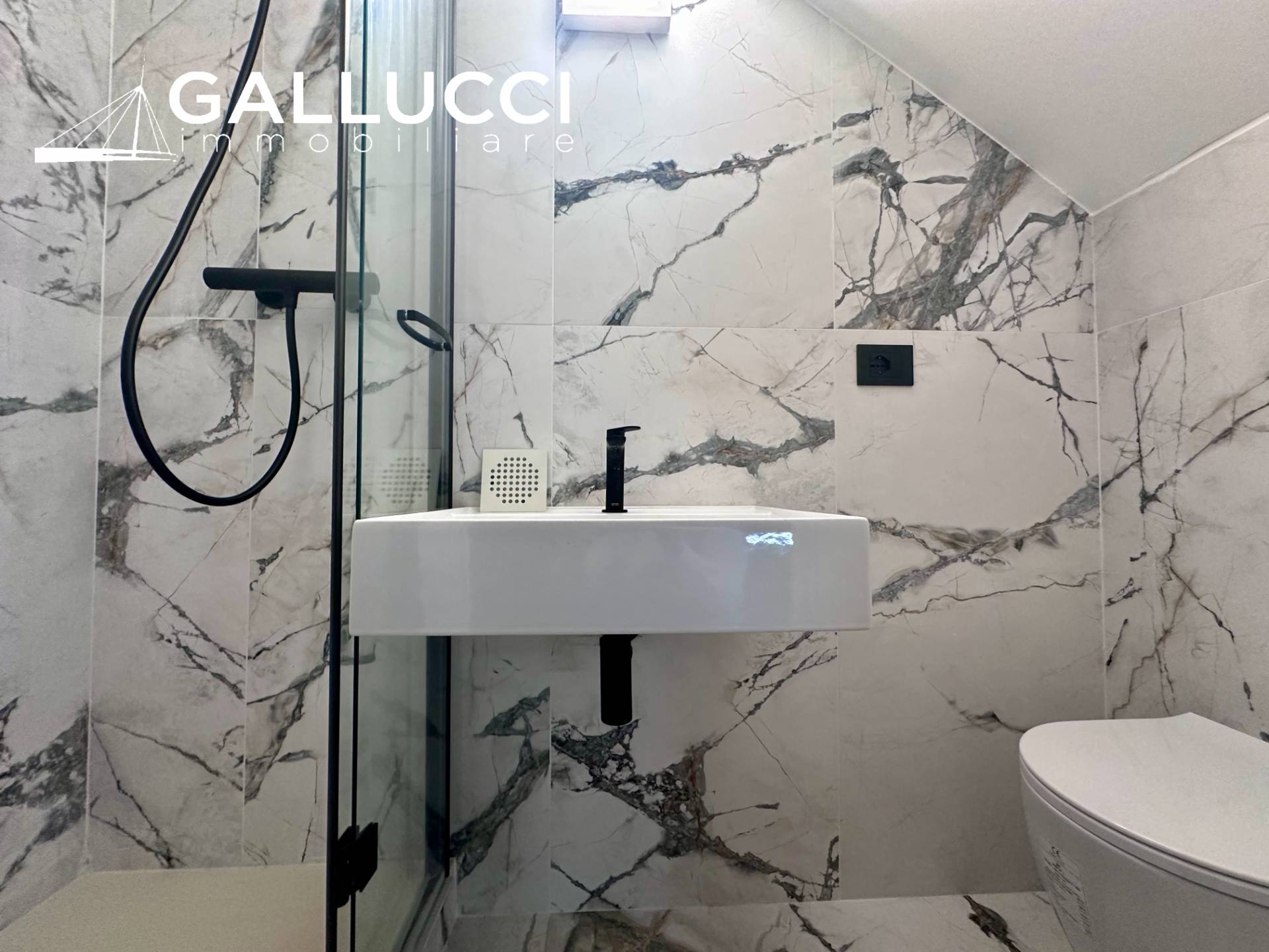 Il bagno dotato di lavabo con sifone darredo a vista, rivestimenti con gres porcellanato, rubinetteria in ottone cromato, punti luce e presa luce; aspiratore ed eventuale presa fm ove prevista la lavatrice.