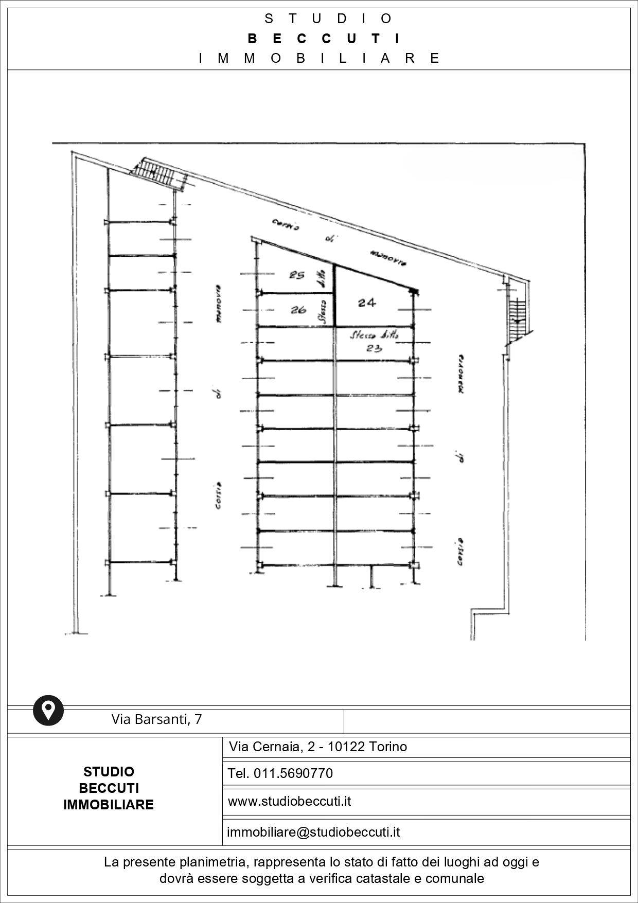 In Via Barsanti, nei pressi di Strada Settimo, in posizione strategica per raggiungere facilmente il centro storico di Torino e le principali vie di comunicazione della citt, in graziosa palazzina in paramano degli anni '90 provvista di ascensore, proponiamo in vendita BOX AUTO al primo piano interrato.