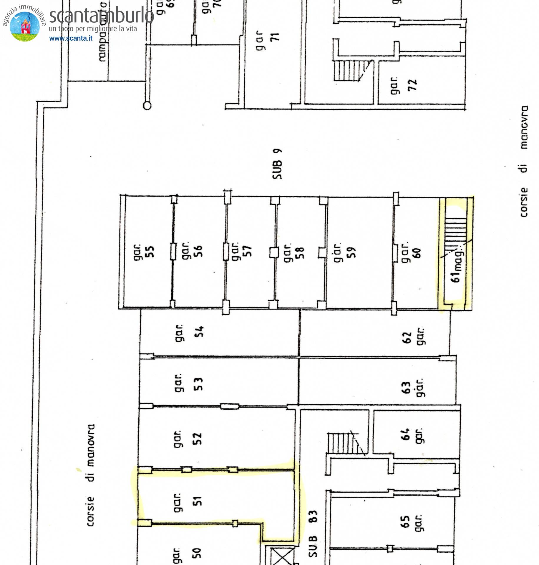 Presente contatore di corrente a defalco, zone di manovra e garage a norma vigili del fuoco.