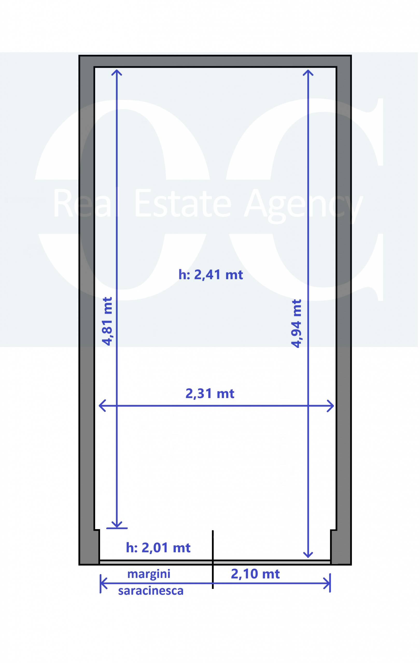 Misure Interne: Lunghezza: 4.94 mt Larghezza: 2.31 mt Altezza: 2.40 mt Misure Ingresso Saracinesca: Larghezza: 2.10 mt Altezza: 2.01 mt Le presenti informazioni non costituiscono in nessun caso vincolo contrattuale.