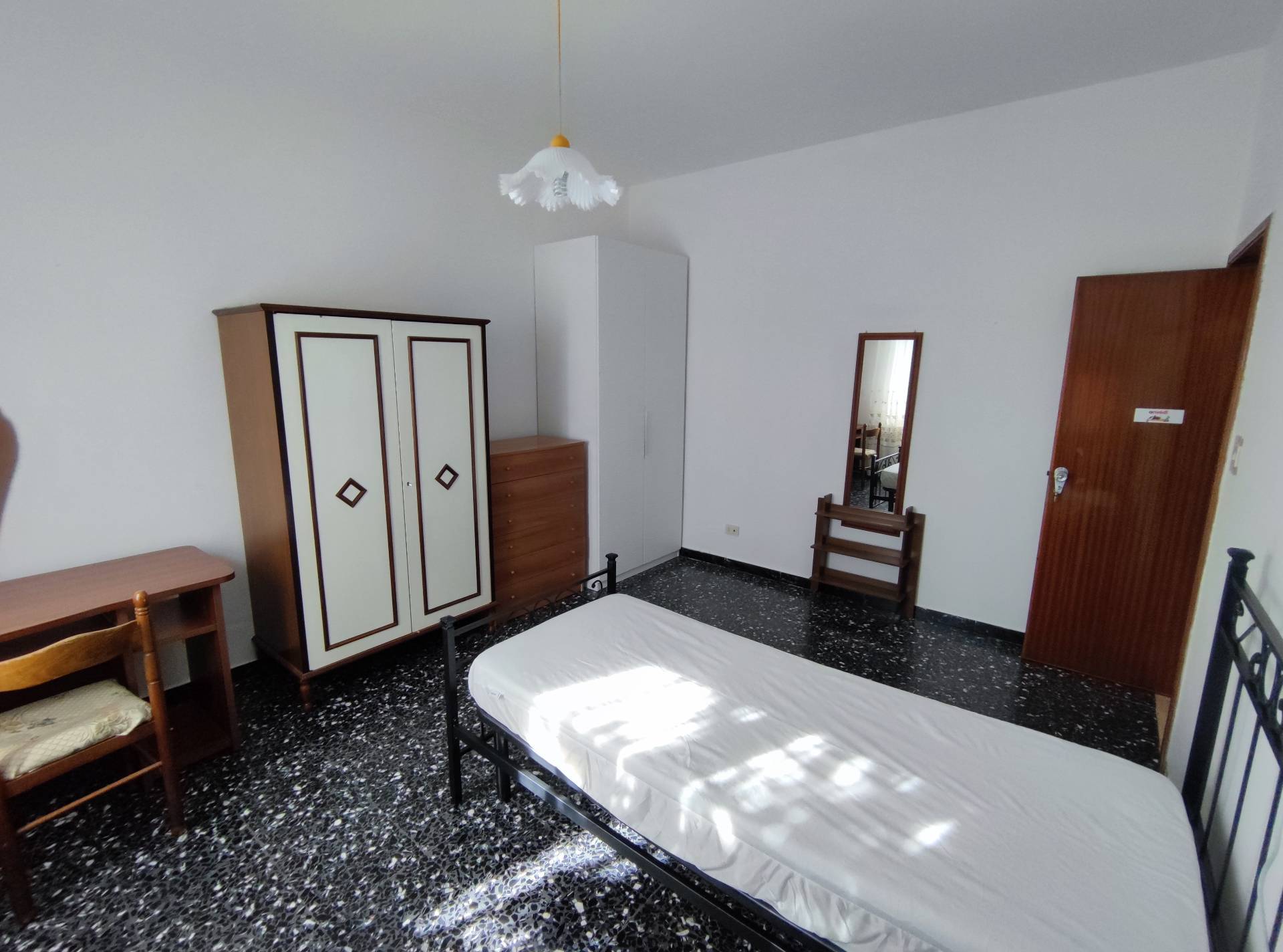 La casa singola, NO CONDOMINIO, dotata di un posto auto esterno in corte condominiale tutta recintata, sita al piano primo, tutto arredato, ideale per studenti, collocata fronte universit.