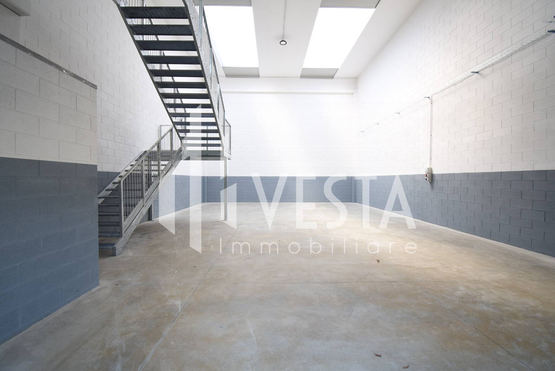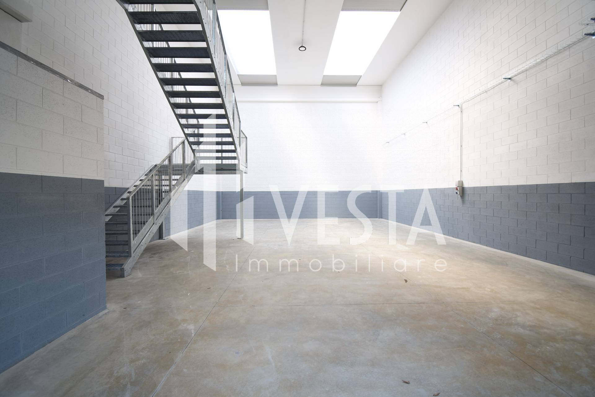 L'immobile composto da capannoni al piano terreno con servizi di mq. 169, altezza 7,50 metri, oltre ad uffici al primo piano di mq. 46 collegati con scala interna.