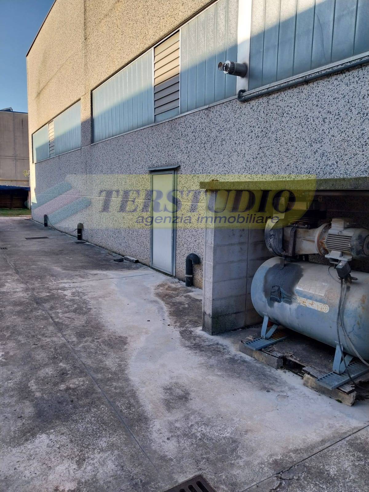 L'immobile cosi composto: - capannone di circa 750 mq con servizi - 1 ufficio - piazzale esterno di pertinenza 1000 mq - 3 portoni d'ingresso - area coperta 1000 mq Possibilit di unire palazzina con appartamenti, piano terra e piano primo.