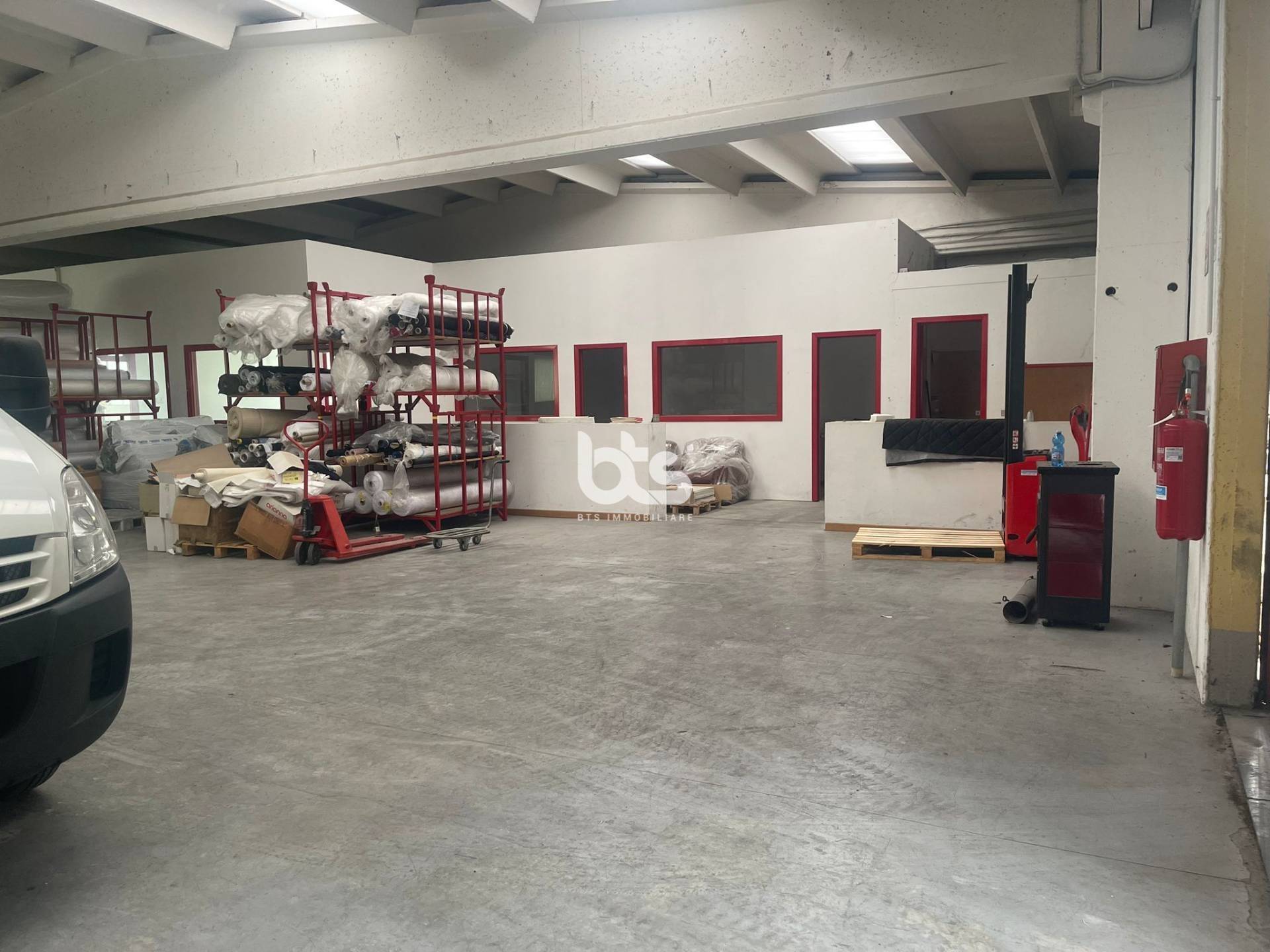 Inoltre, sono presenti anche uffici e servizi igienici, pronti all'uso. Il capannone dotato di un'ampia area esterna, perfetta per la sosta dei veicoli e per eventuali operazioni di carico e scarico merci.